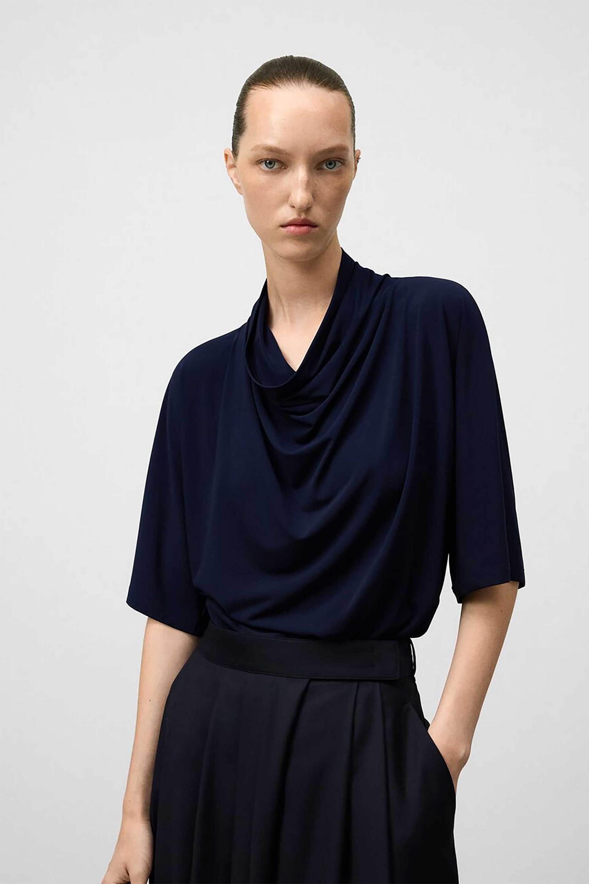 Γυναικεία μπλούζα. Μονόχρωμη. Ντραπέ. Κοντό μανίκι. Προέλευση: CN. 94% polyester, 6% elastane ADOLFO DOMINGUEZ SA