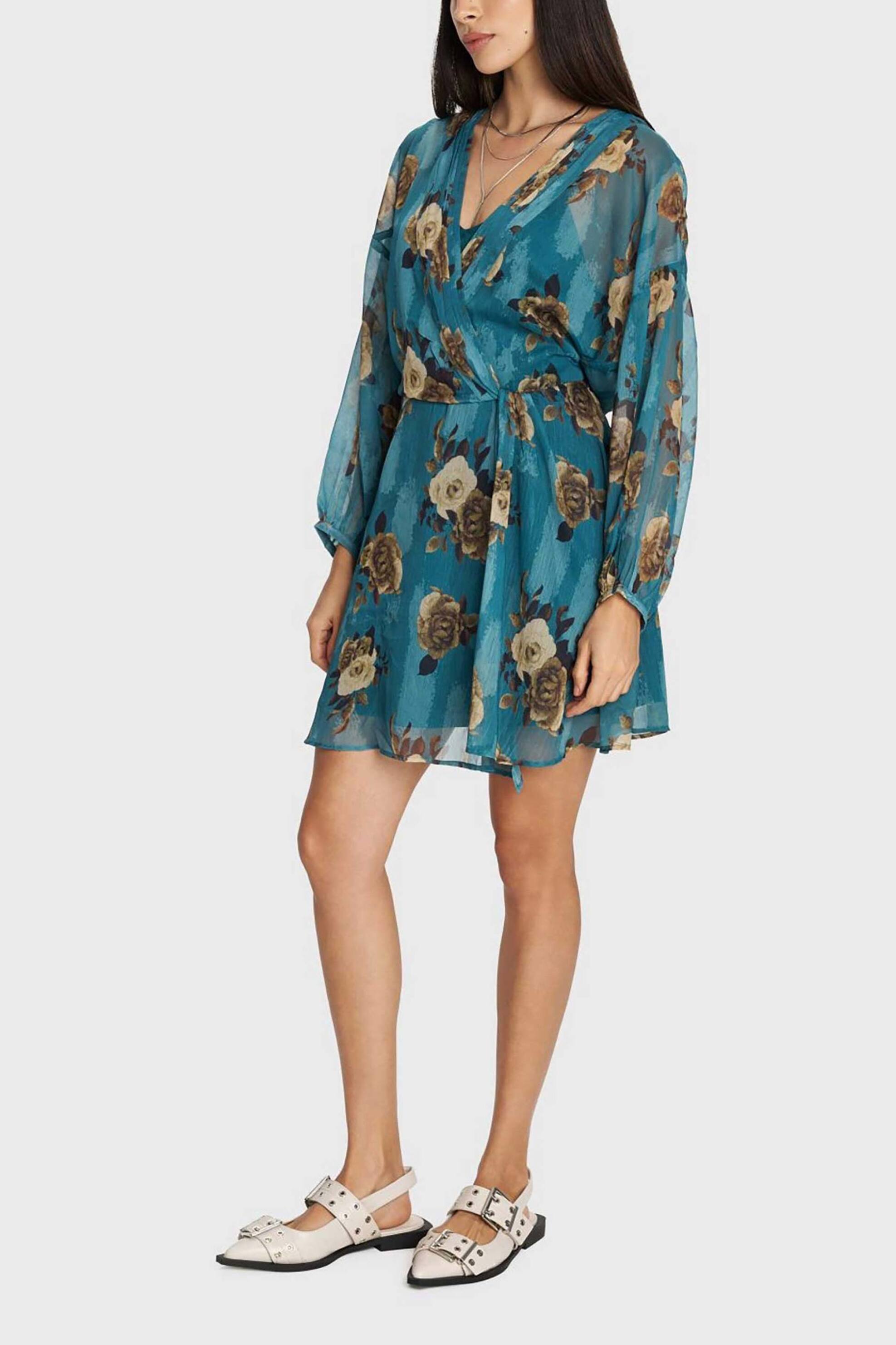 Γυναικείο mini φόρεμα. Μονόχρωμο. V λαιμόκοψη. Eλαστική μέση. Μακρύ μανίκι. Προέλευση: Ινδίας. 100% polyester Το μοντέλο έχει ύψος 174 cm και φοράει μέγεθος S. AXF Α.Ε. ΕΝΔΥΜΑΤΩΝ ΥΦΑΣΜΑΤΩΝ