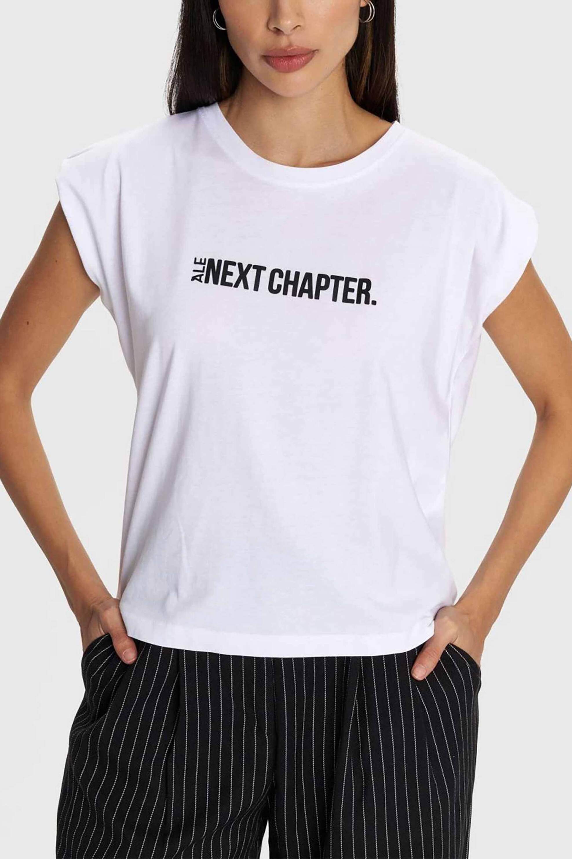 Γυναικείο T-shirt. Lettering στο μπροστινό μέρος. Προέλευση: Μπαγκλαντές. 100% βαμβάκι Το μοντέλο έχει ύψος 174 cm και φοράει μέγεθος S. AXF Α.Ε. ΕΝΔΥΜΑΤΩΝ ΥΦΑΣΜΑΤΩΝ