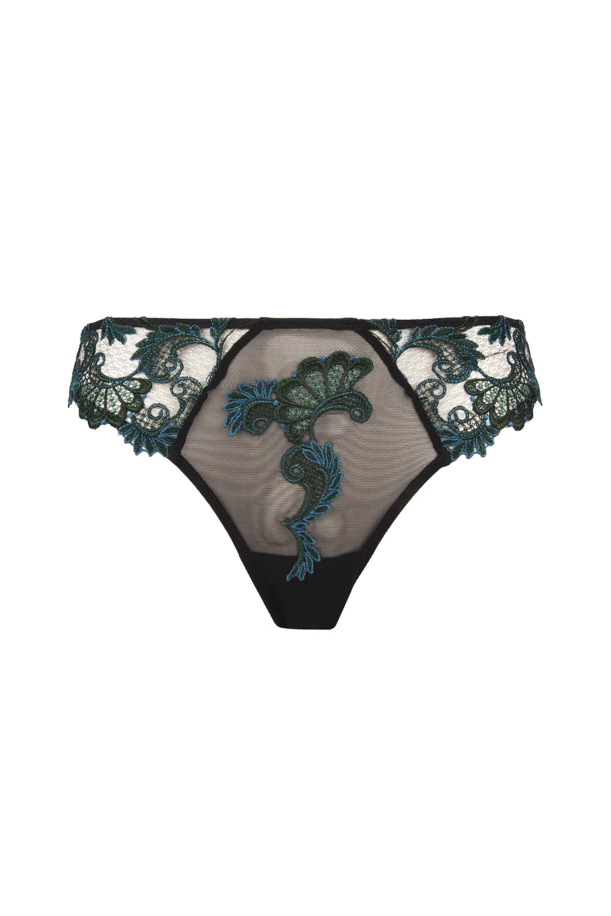 Γυναικείο σλιπ. Δαντέλα και κέντημα. Απλικέ φιόγκος στο πίσω μέρος. 10% βαμβάκι, 8% elastane, 38% polyamide, 44% polyester