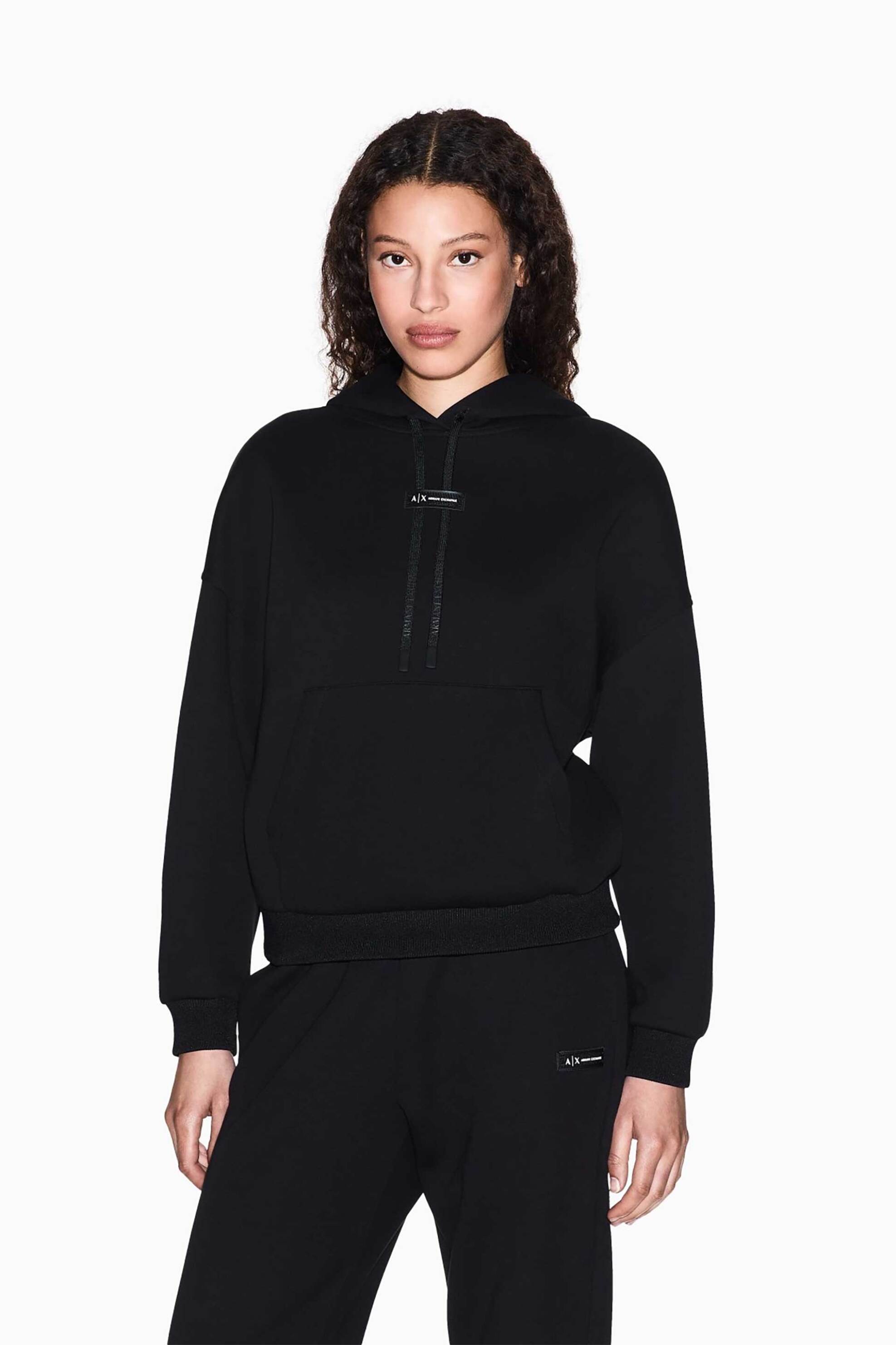 Γυναικεία μπλούζα φούτερ. Μονόχρωμη. Logo patch στο μπροστινό μέρος. Κουκούλα. Ribbed τελειώματα. Προέλευση: ΚΗ. 61% βαμβάκι, 39% polyester BALMI TRADING AND INVESTMENTS LTD