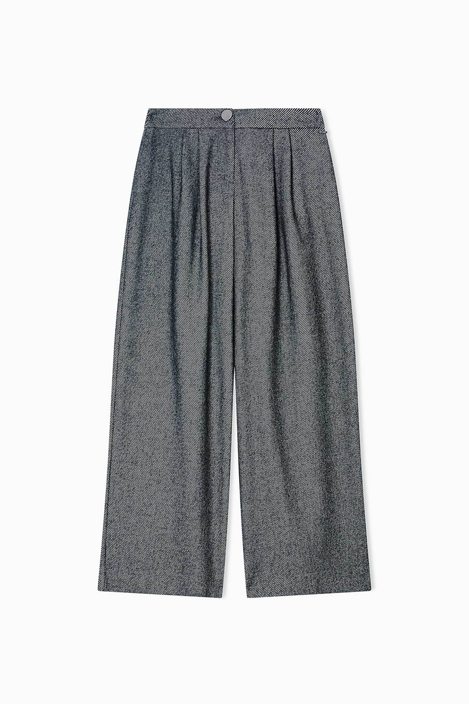Γυναικείο παντελόνι. Ριγέ σχέδιο. Κλείσιμο με φερμουάρ και κουμπί. Τσέπες στο πλάι. Wide leg. Προέλευση: VN. 48% wool, 52% polyester BALMI TRADING AND INVESTMENTS LTD