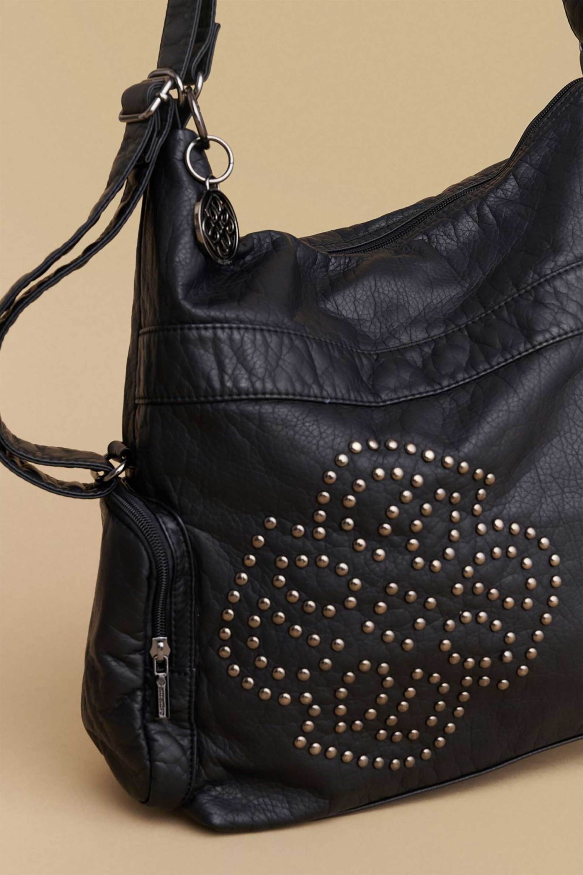 Γυναικεία τσάντα ώμου. Κλείσιμο με φερμουάρ. Τρουκς. Εξωτερικές τσέπες. Προέλευση: Κίνα. 100% polyurethane AXF Α.Ε. ΕΝΔΥΜΑΤΩΝ ΥΦΑΣΜΑΤΩΝ