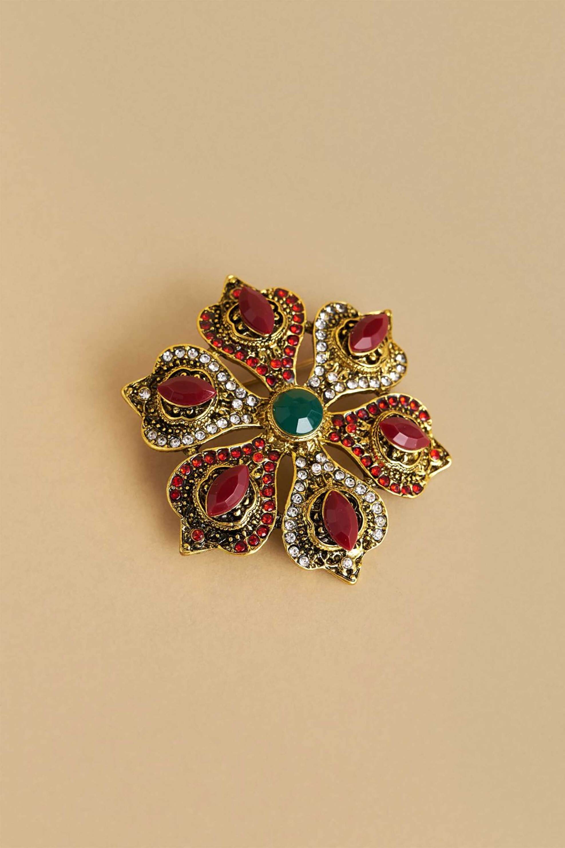 Γυναικεία καρφίτσα. Σχήμα λουλουδιού. Προέλευση: Κίνα. 50% συνθετικό, 50% γυαλί AXF Α.Ε. ΕΝΔΥΜΑΤΩΝ ΥΦΑΣΜΑΤΩΝ