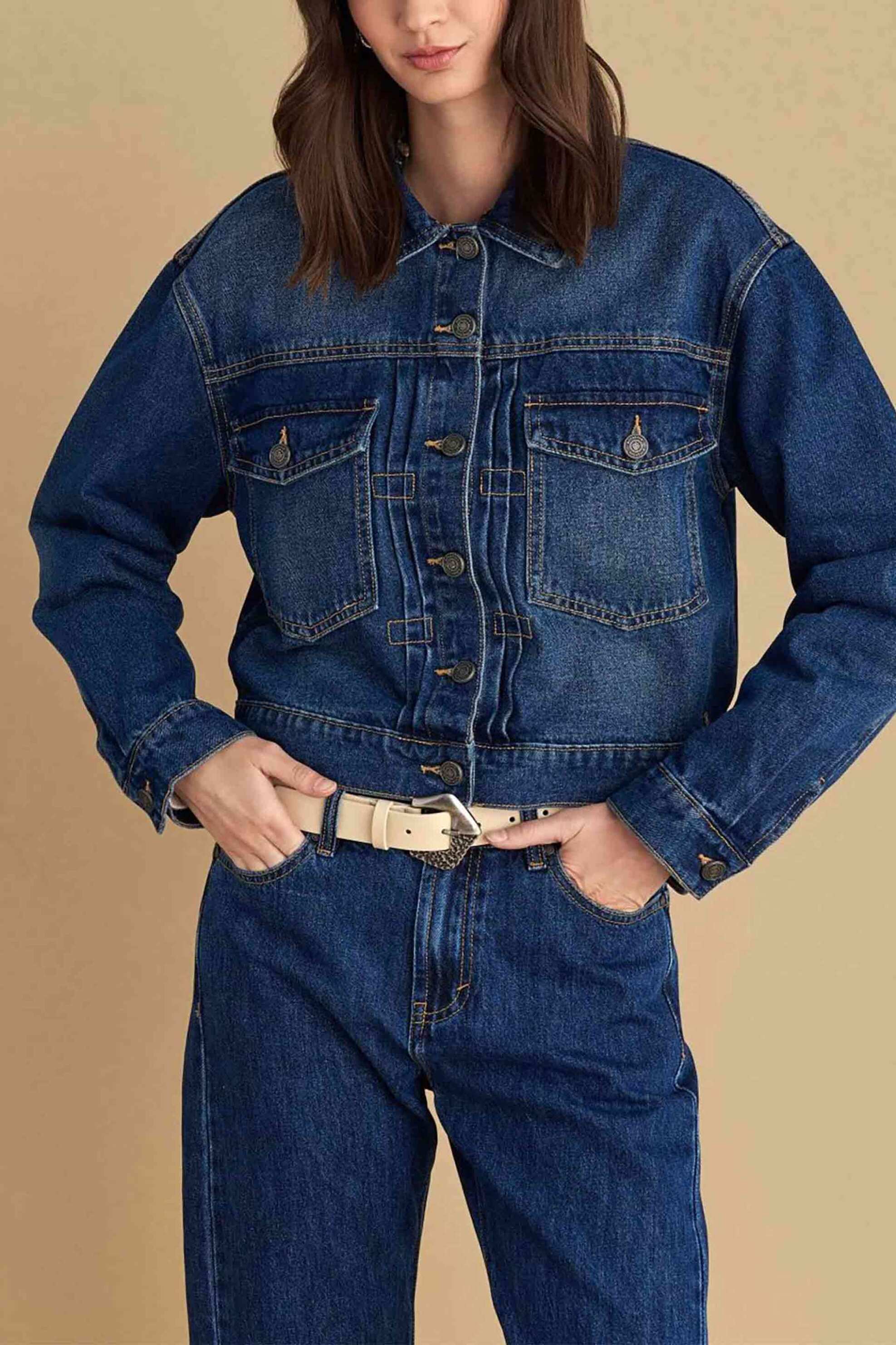 Γυναικείο μπουφάν. Denim. Flap τσέπες. Κλείσιμο με κουμπιά. Προέλευση: Κίνα. 95% βαμβάκι, 33% βισκόζη, 2% polyester AXF Α.Ε. ΕΝΔΥΜΑΤΩΝ ΥΦΑΣΜΑΤΩΝ