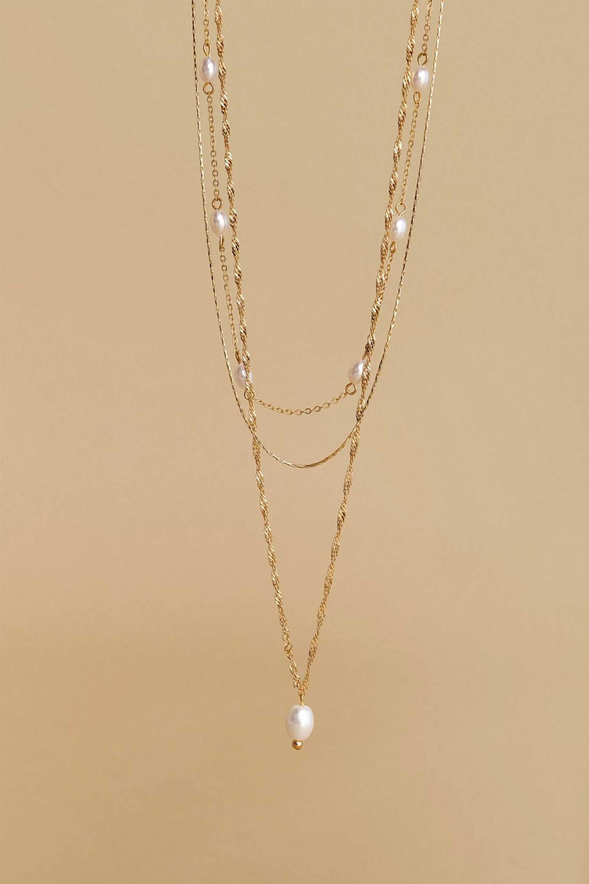 Γυναικείο κολιέ. Συνδυασμός υλικών. Προέλευση: Κίνα. 40% μεταλλικο, 30% συνθετικό, 30% γυαλί AXF Α.Ε. ΕΝΔΥΜΑΤΩΝ ΥΦΑΣΜΑΤΩΝ