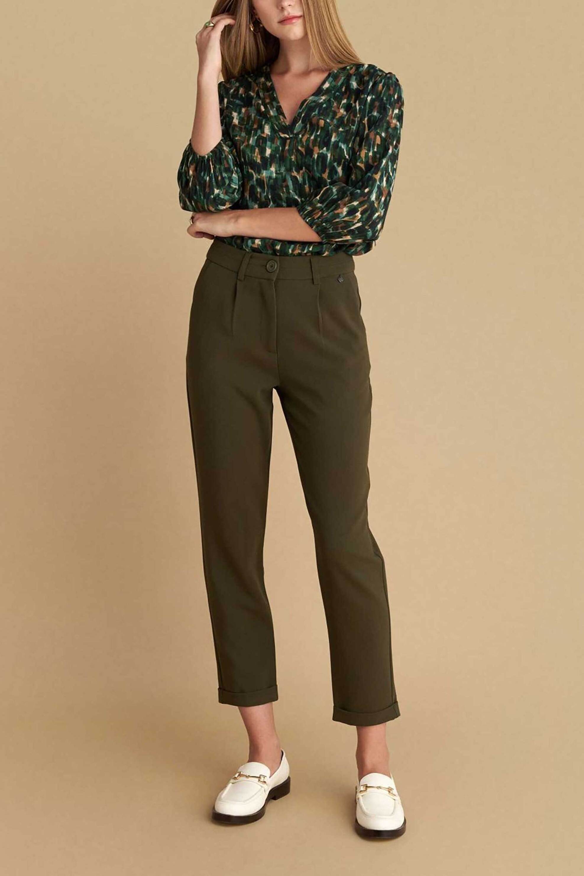 Γυναικείο παντελόνι. Κλείσιμο με κουμπί και φερμουάρ. Τσέπες στο πλάι. Cropped. Straight fit. Προέλευση: Κίνα. 62% polyester, 33% βισκόζη, 5% elastane AXF Α.Ε. ΕΝΔΥΜΑΤΩΝ ΥΦΑΣΜΑΤΩΝ