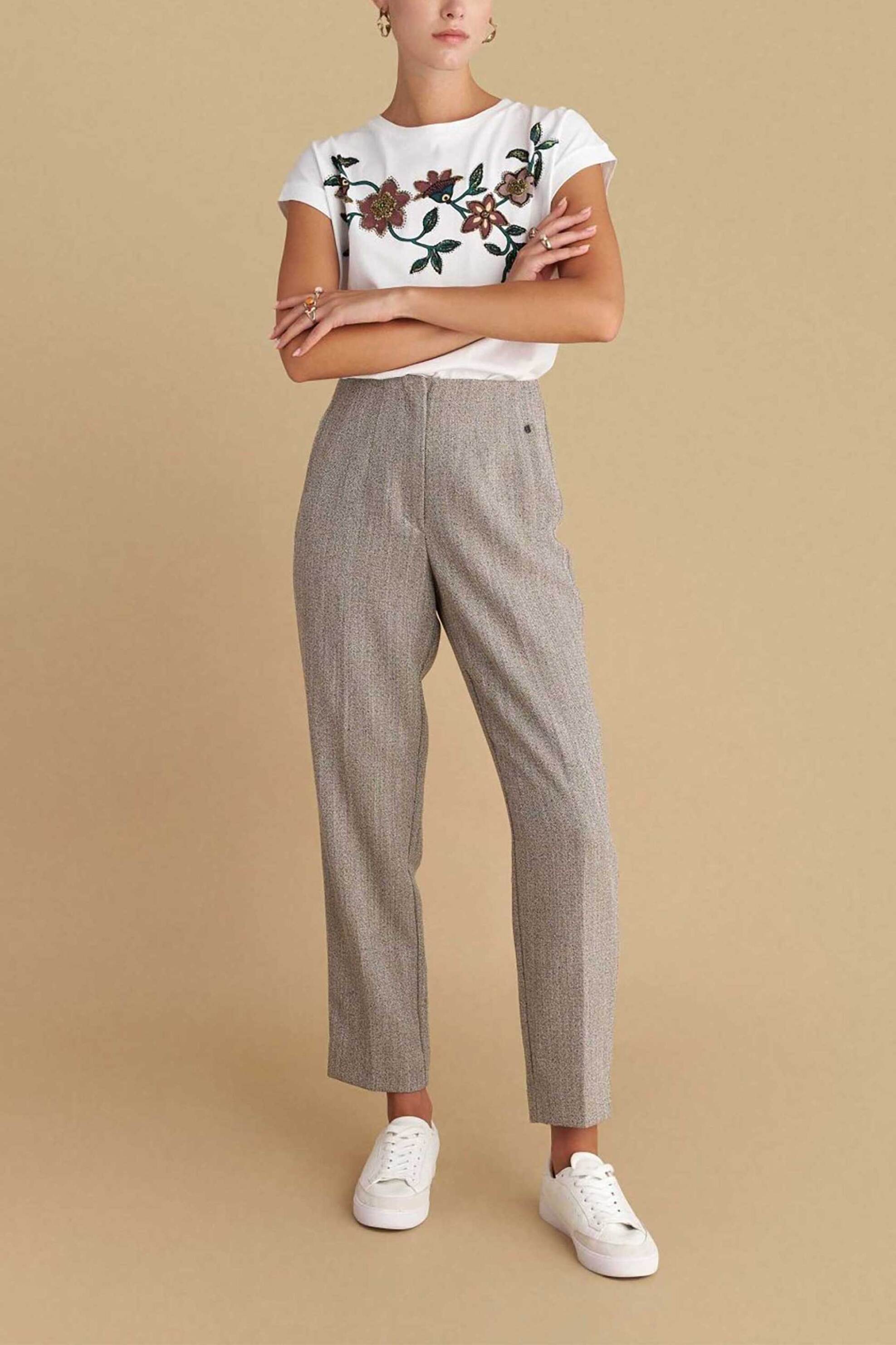 Γυναικείο παντελόνι. Κλείσιμο με κόπιτσα και φερμουάρ. Straight fit. Προέλευση: Κίνα. 58% polyester, 41%polyester, 1% elastane AXF Α.Ε. ΕΝΔΥΜΑΤΩΝ ΥΦΑΣΜΑΤΩΝ
