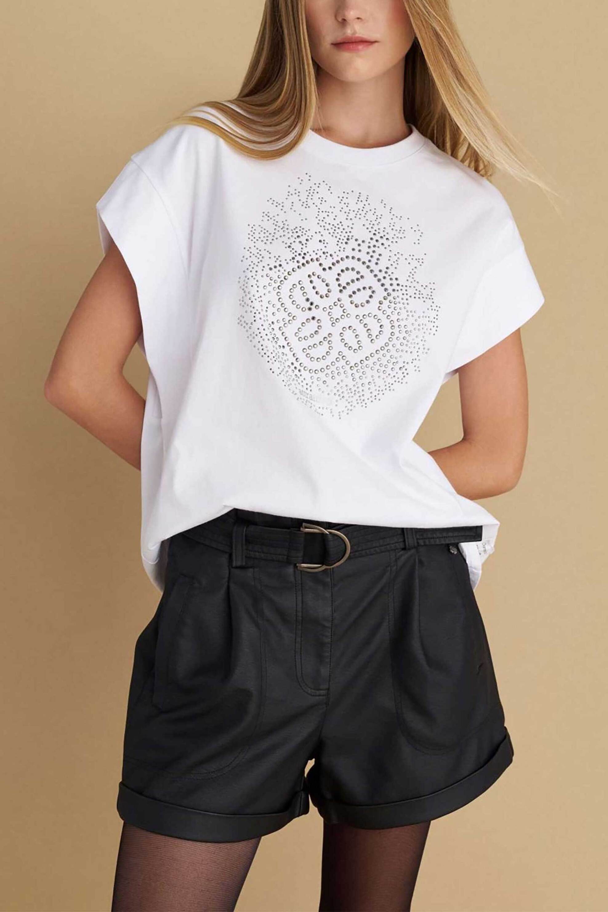 Γυναικείο T-shirt. Στρας στο μπροστινό μέρος. Στρογγυλή λαιμόκοψη. Προέλευση: Τουρκία. 100% βαμβάκι AXF Α.Ε. ΕΝΔΥΜΑΤΩΝ ΥΦΑΣΜΑΤΩΝ