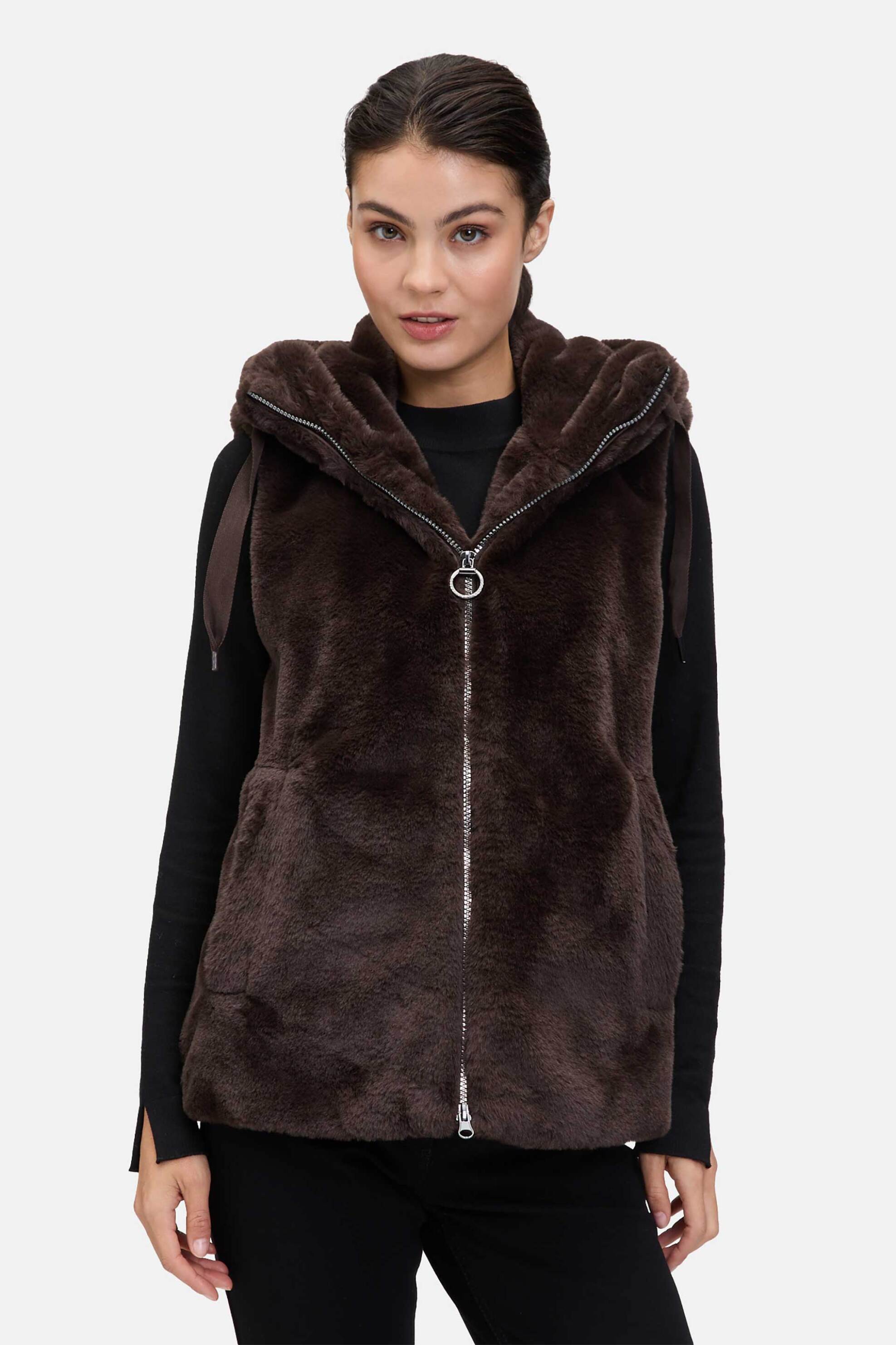 Γυναικείο γιλέκο. Αμάνικο. Faux γούνα. Kουκούλα με κορδόνια περίσφυξης. Κλείσιμο με φερμουάρ. Τσέπες στο πλάι. Προέλευση: China. 100% polyester BETTY BARCLAY GROUP GMBH & CO.KG