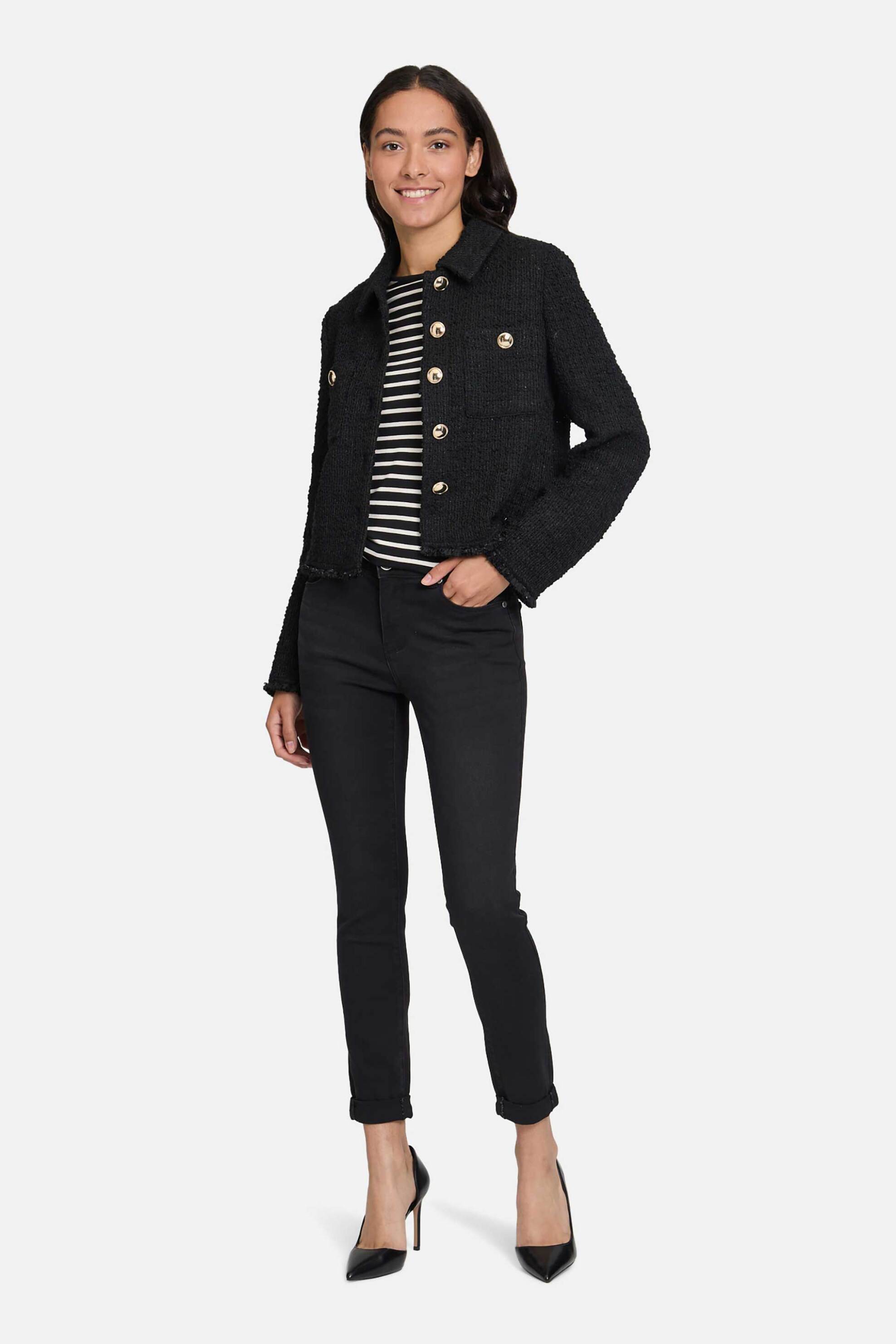 Γυναικείο τζιν παντελόνι. Πεντάτσεπο. Κλείσιμο με φερμουάρ και κουμπί. Logo patch στο πίσω μέρος. Slim fit. Προέλευση: China. 56% βαμβάκι, 30% βισκόζη, 12% polyester, 2% elastane BETTY BARCLAY GROUP GMBH & CO.KG
