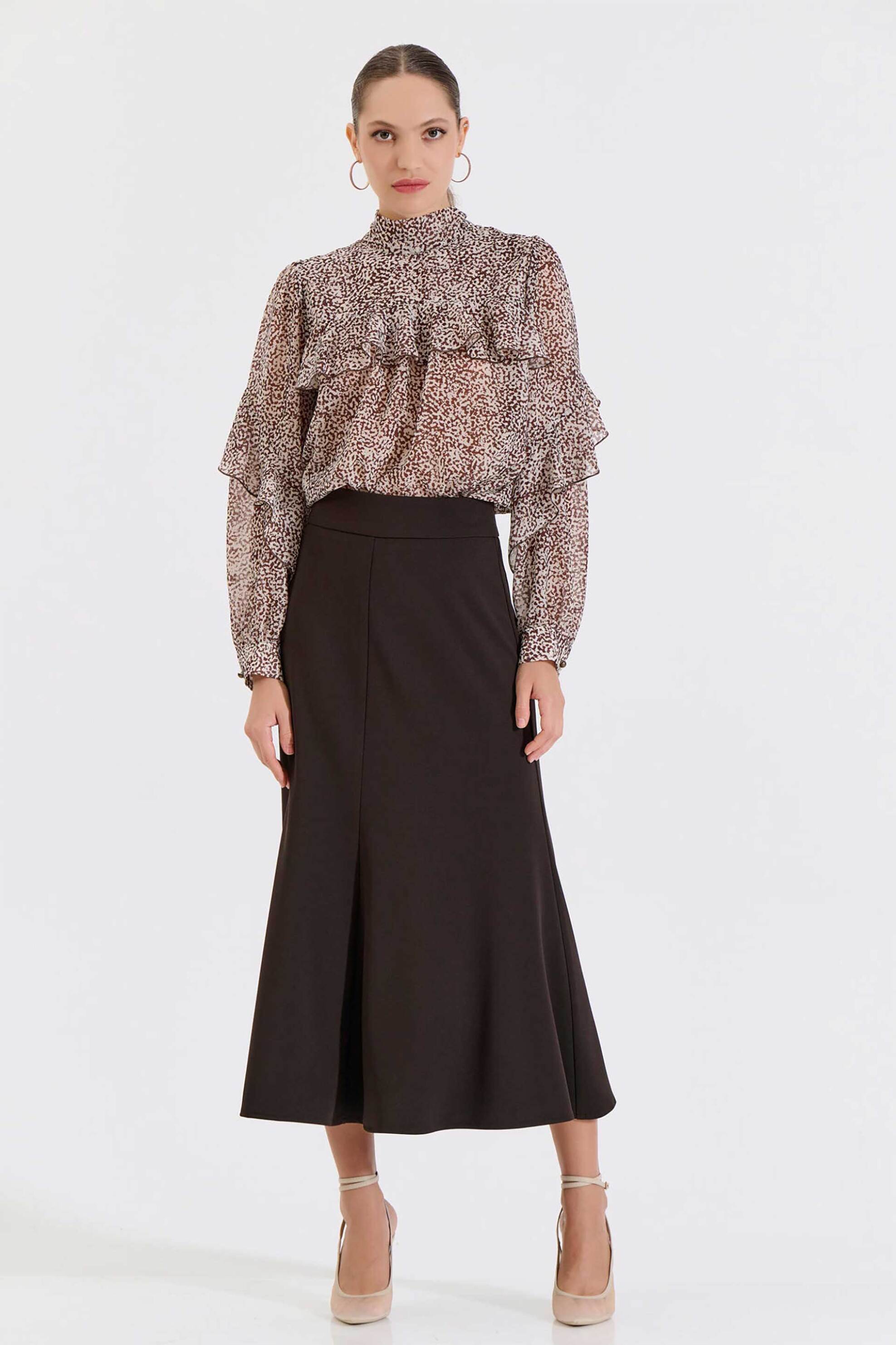 Γυναικεία midi φούστα. Κλος. Κλείσιμο με φερμουάρ στο πίσω μέρος. Προέλευση: Ελλάδα. 95% polyester, 5% spandex ΚΩΣΤΑΡΙΔΗΣ Β. ΑΒΕΕ BILLCOST