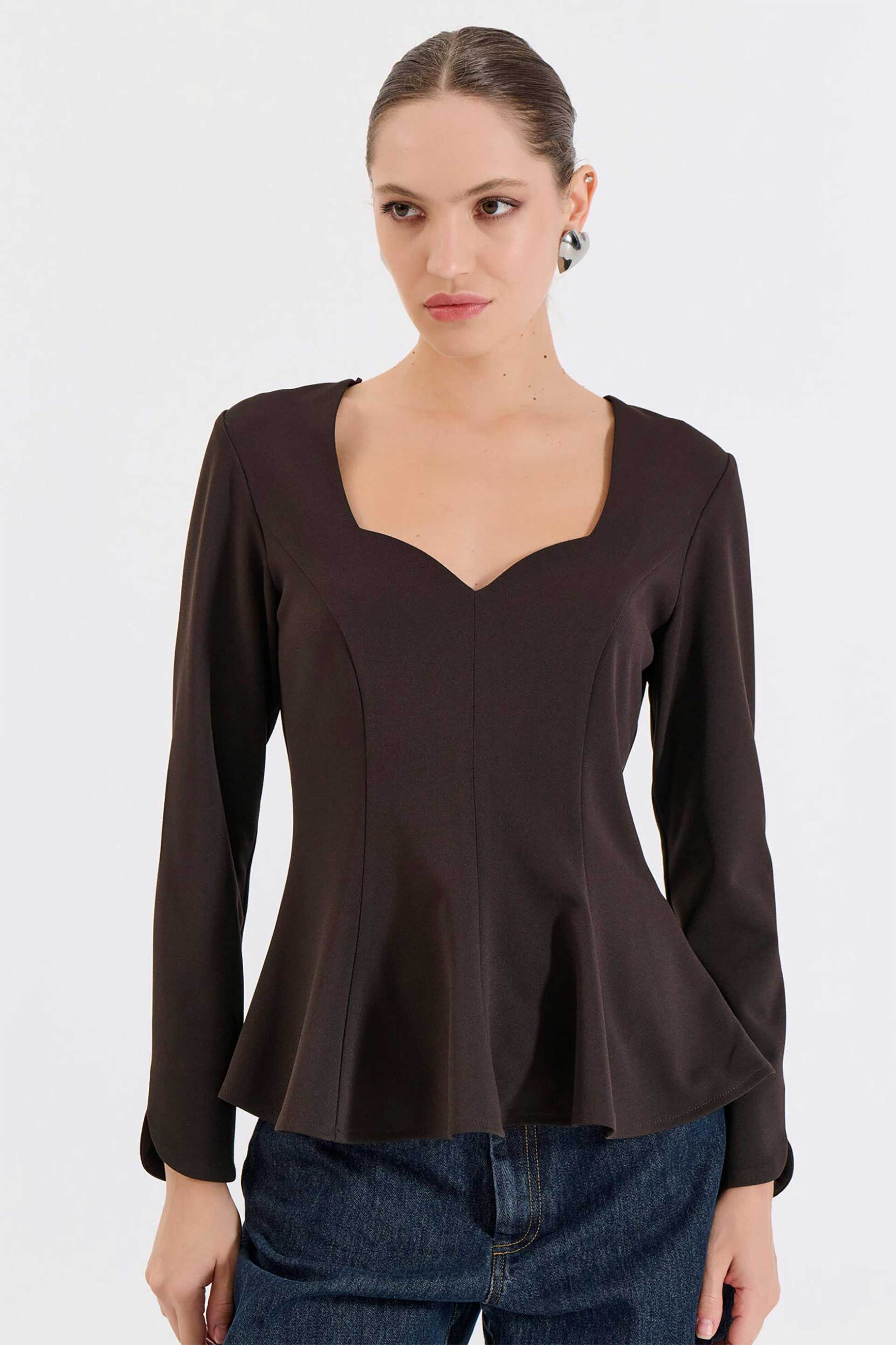 Γυναικεία μπλούζα. Μονόχρωμη. Ντεκολτέ σε σχήμα καρδιάς. Κλείσιμο με φερμουάρ στο πίσω μέρος. Μακρύ μανίκι. Προέλευση: Ελλάδα. 95% polyester, 5% spandex ΚΩΣΤΑΡΙΔΗΣ Β. ΑΒΕΕ BILLCOST