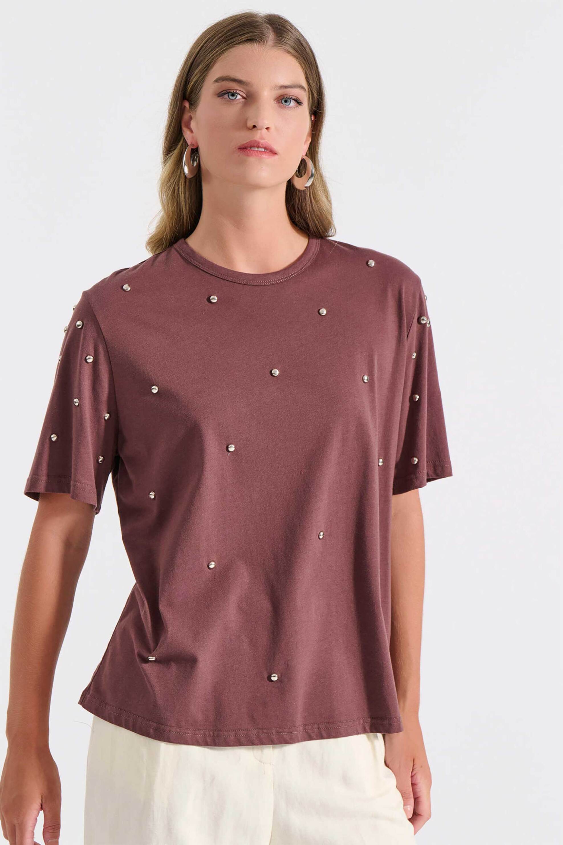 Γυναικεία μπλούζα. Σχέδιο με τρουκς. Στρογγυλή λαιμόκοψη. Κοντό μανίκι. Χαλαρή γραμμή. Προέλευση: Ελλάδα. 100% οργανικό βαμβάκι Sustainable: προϊόν που έχει κατασκευαστεί με ίνες ή/και διαδικασίες βιώσιμης παραγωγής, μειώνοντας το περιβαλλοντικό αποτύπωμα. ΚΩΣΤΑΡΙΔΗΣ Β. ΑΒΕΕ BILLCOST