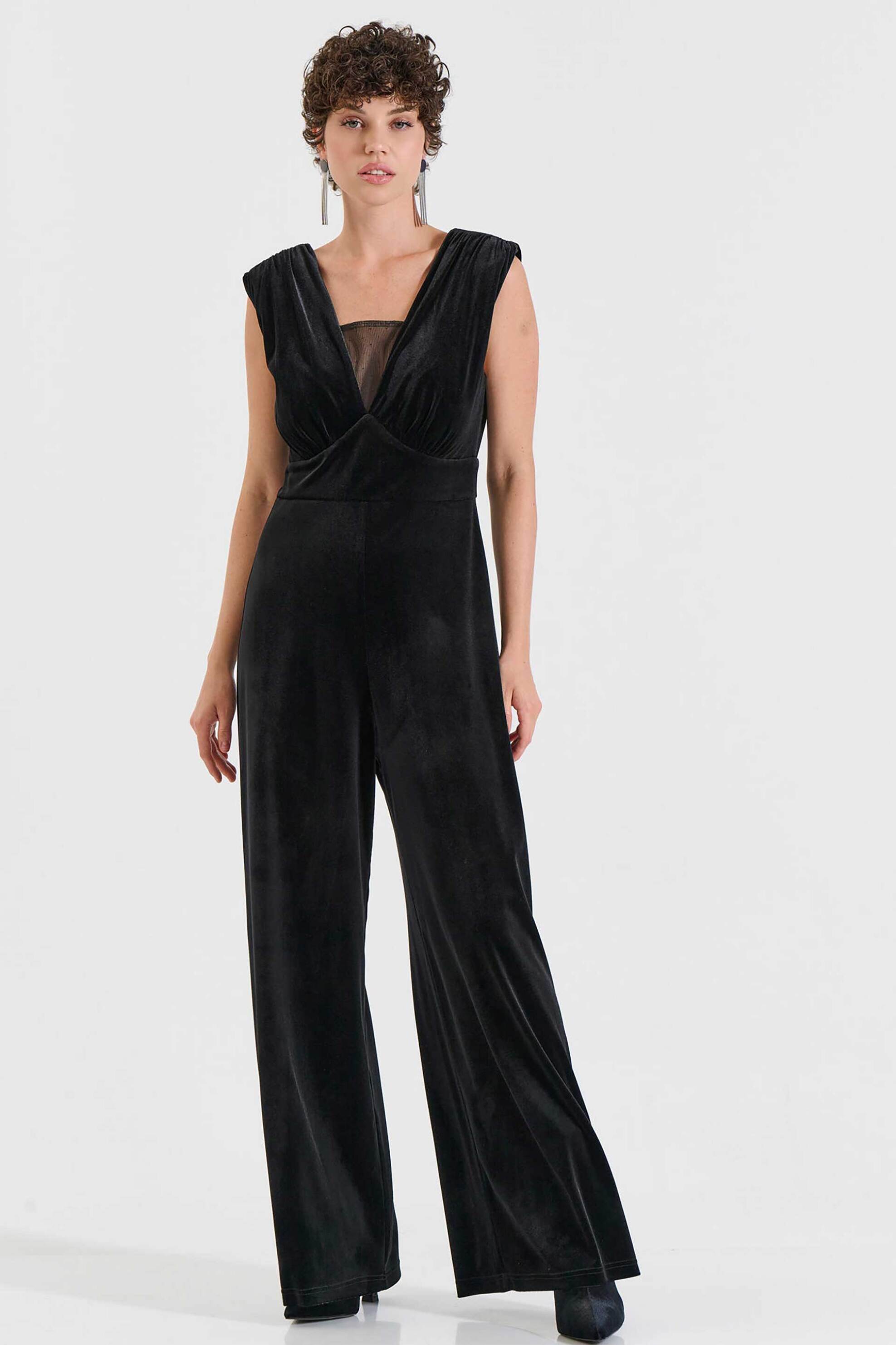 Γυναικεία ολόσωμη φόρμα. Αμάνικη. Βελούδινη υφή. Κλείσιμο με φερμουάρ στο πίσω μέρος. V λαιμόκοψη με διάφανη λεπτομέρεια. Προέλευση: Ελλάδα. 94% polyester, 6% spandex ΚΩΣΤΑΡΙΔΗΣ Β. ΑΒΕΕ BILLCOST
