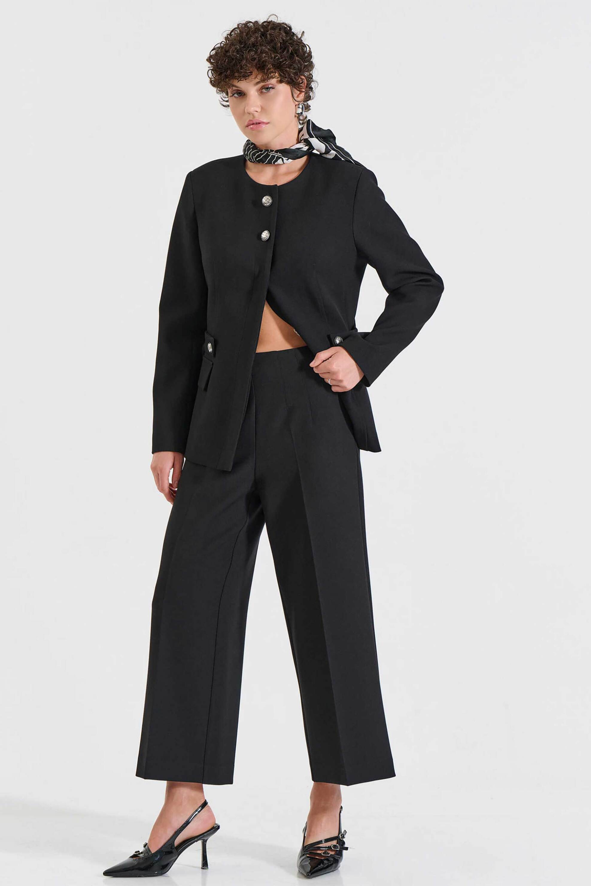 Γυναικεία ζιπ κιλότ. Μονόχρωμη. Κλείσιμο με φερμουάρ στο πλάι. Προέλευση: Ελλάδα. 73% polyester, 21% rayon, 6% spandex ΚΩΣΤΑΡΙΔΗΣ Β. ΑΒΕΕ BILLCOST