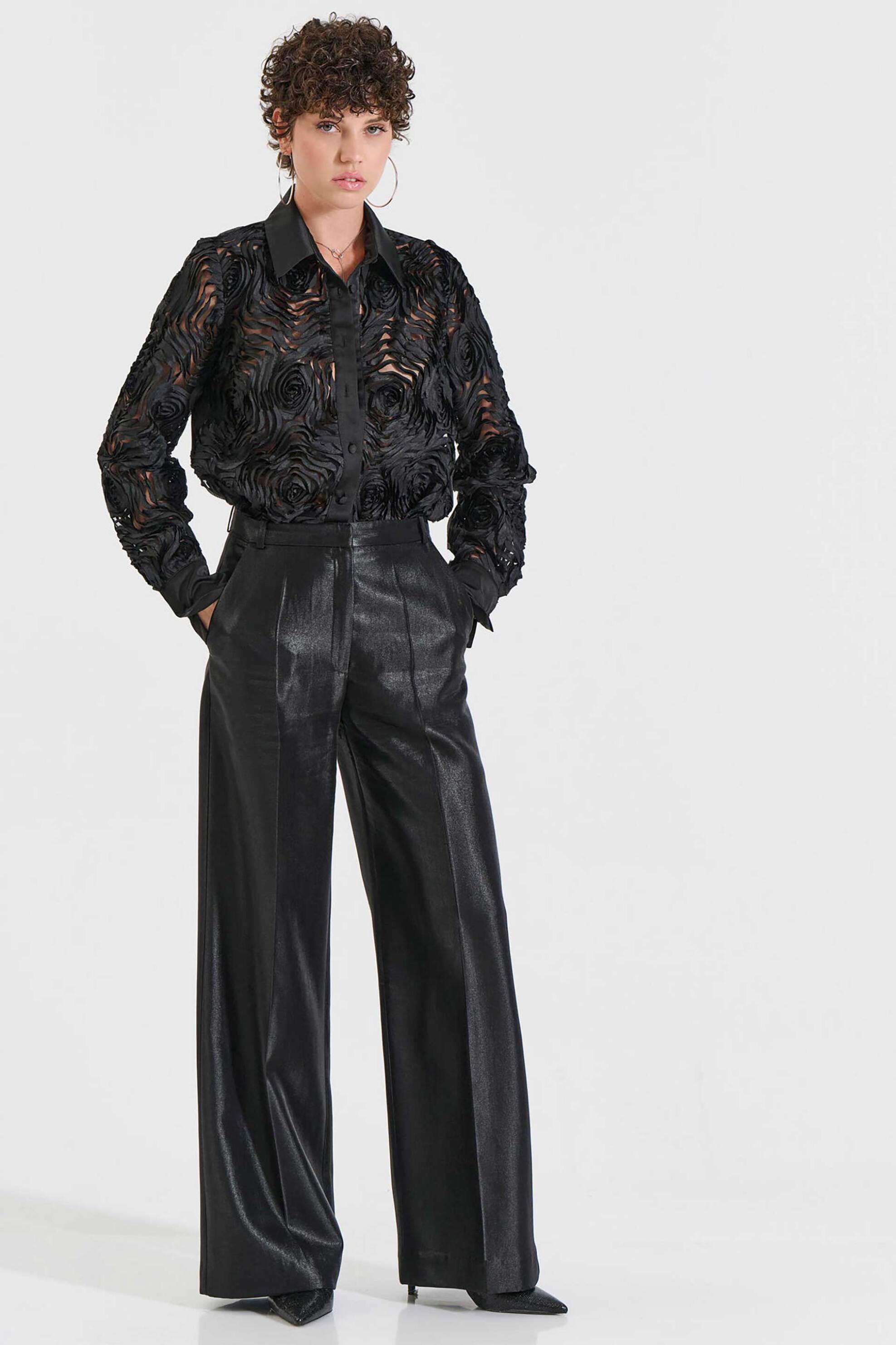 Γυναικείο παντελόνι. Σατέν. Κλείσιμο με γάντζο και φερμουάρ. Τσέπες στο πλάι και στο πίσω μέρος. Relaxed fit. Προέλευση: Ελλάδα. 83% rayon, 10% polyester, 7% nylon ΚΩΣΤΑΡΙΔΗΣ Β. ΑΒΕΕ BILLCOST