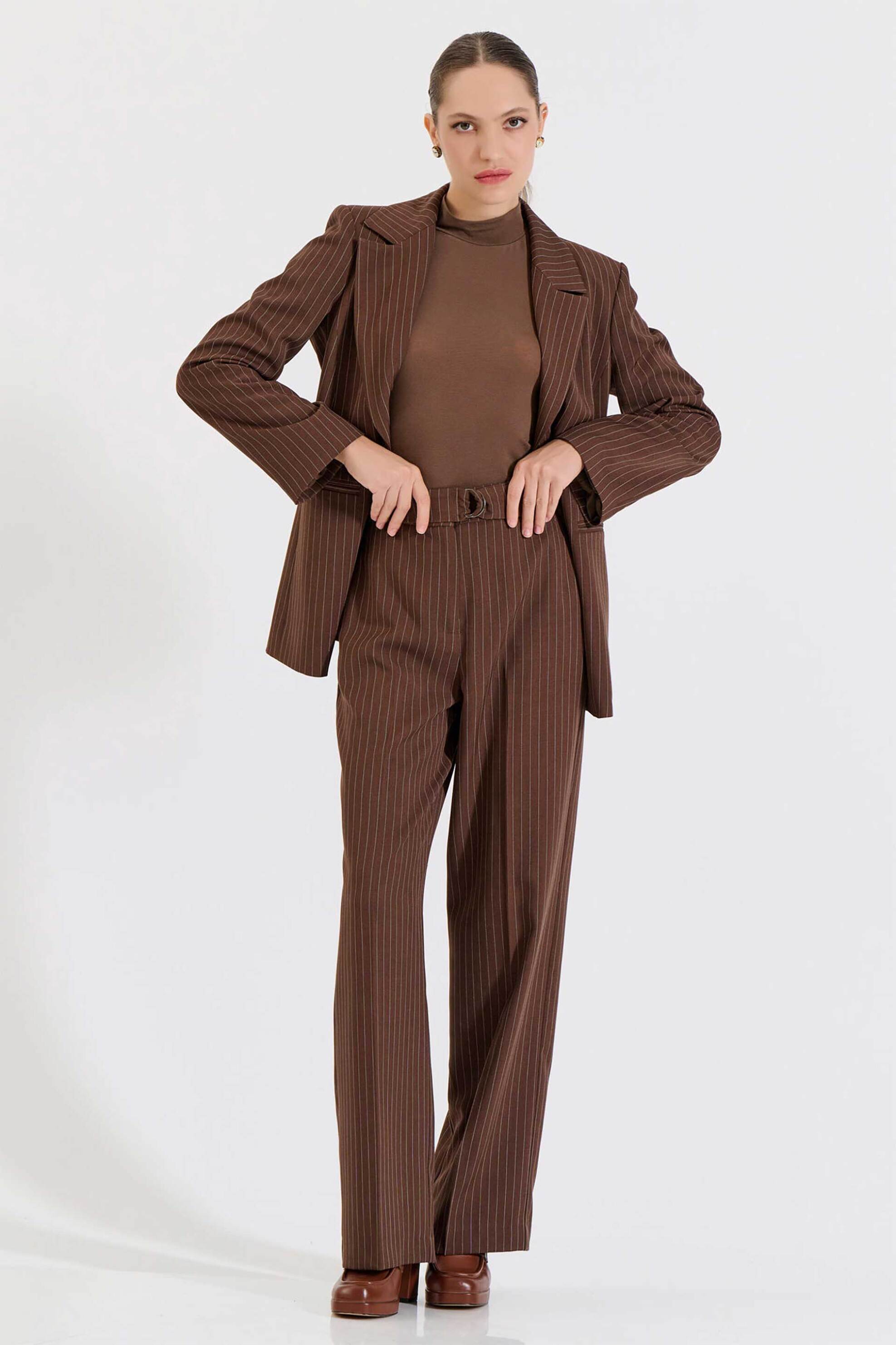 Γυναικείο παντελόνι. Ψηλόμεσο. Ριγέ σχέδιο. Ζώνη στη μέση. Τσέπες στο πλάι και στο πίσω μέρος. Προέλευση: Ελλάδα. 93% polyester, 5% rayon, 2% spandex ΚΩΣΤΑΡΙΔΗΣ Β. ΑΒΕΕ BILLCOST