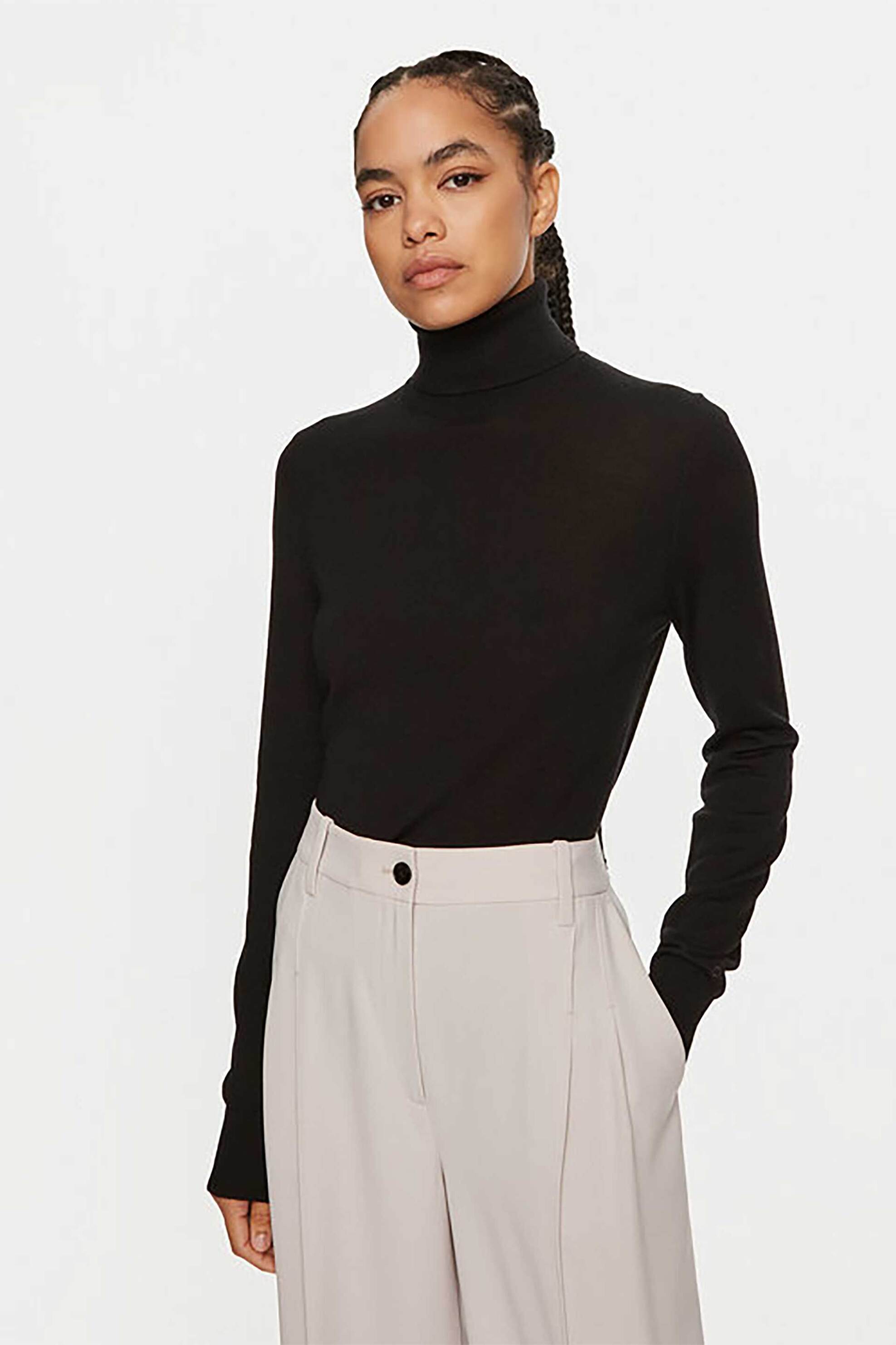 Γυναικείο ζιβάγκο. Μονόχρωμο. Μακρύ μανίκι. Κεντητό μονόγραμμα στο μανίκι. Ribbed τελείωμα στα μανίκια και στο κάτω μέρος. Regular fit. 100% μαλλί