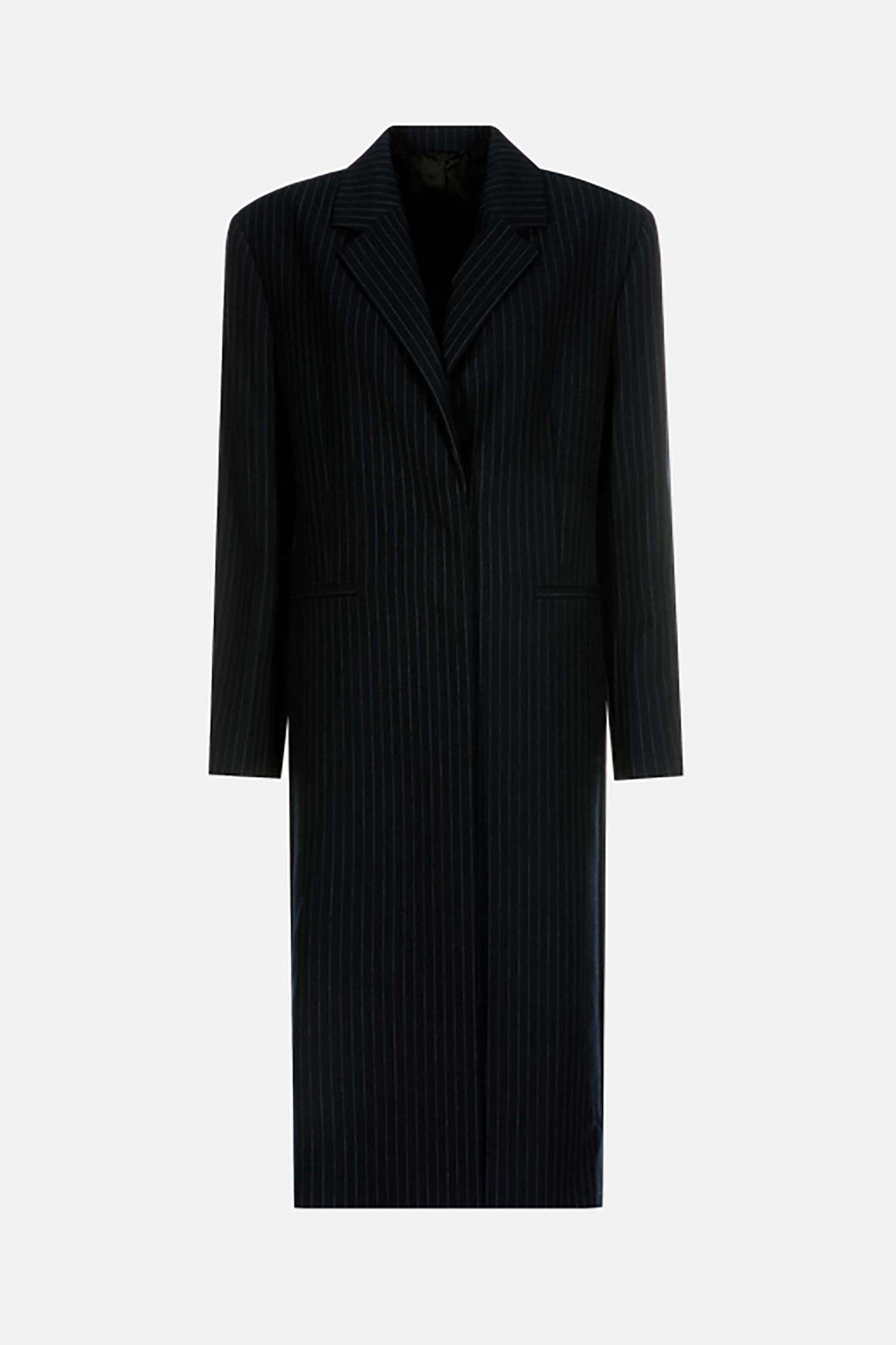 Γυναικείο παλτό. Κλασικός γιακάς. Μακρύ μανίκι. Ριγέ σχέδιο. Τσέπες στο μπροστινό μέρος. 26% βισκόζη, 62% polyester, 9% wool, 3% elastane