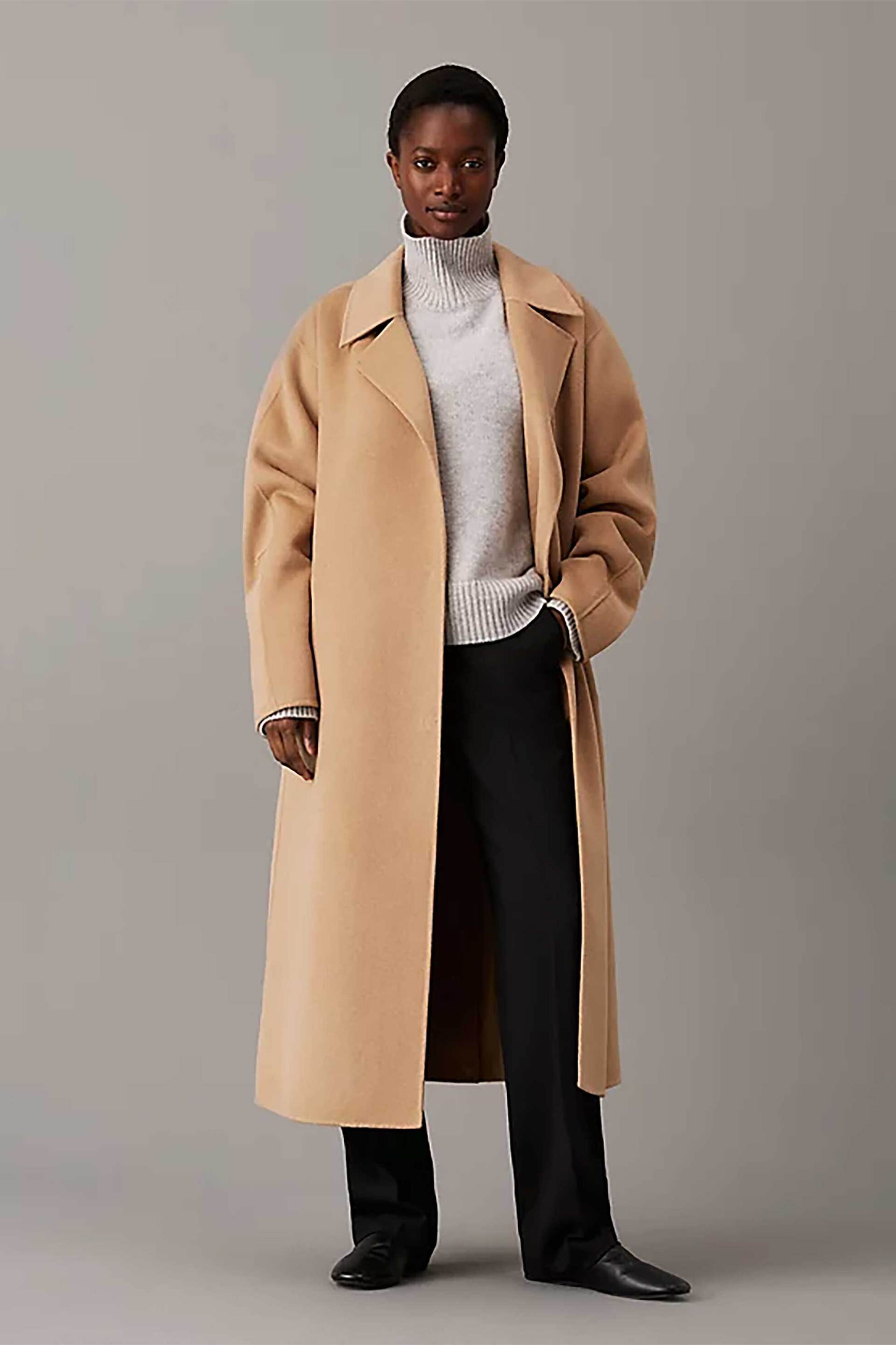 Γυναικείο παλτό. Μονόχρωμο. Γιακάς πέτο. Κλείσιμο με ζώνη στη μέση. Τσέπες στο πλάι. Κεντημένο logo patch στο πίσω μέρος. 50% wool, 45% polyester, 5% other fibers