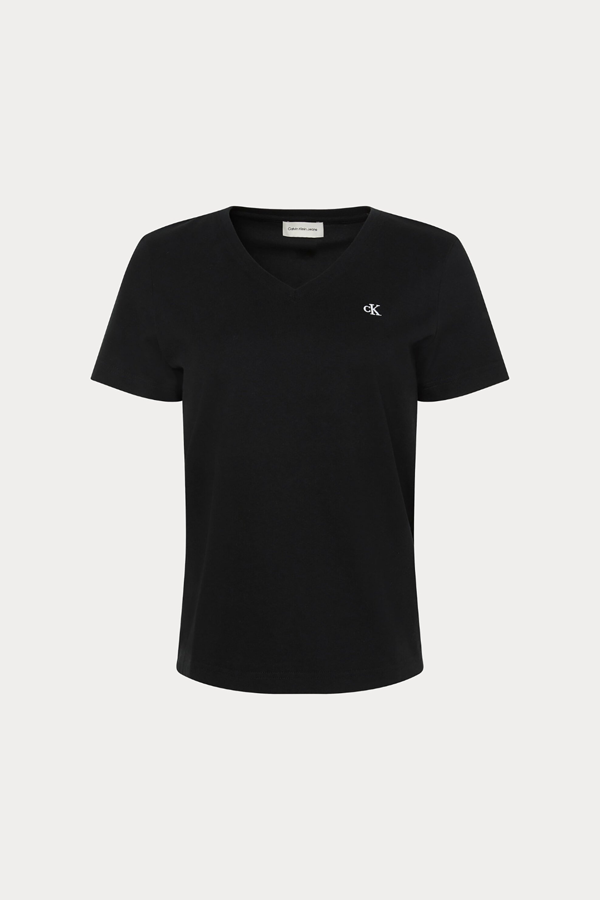 Γυναικείο T-shirt. Μονόχρωμο. V λαιμόκοψη. Λογότυπο στο στήθος. Regular fit. Προέλευση: IN. 100% βαμβάκι SARKK ABEE
