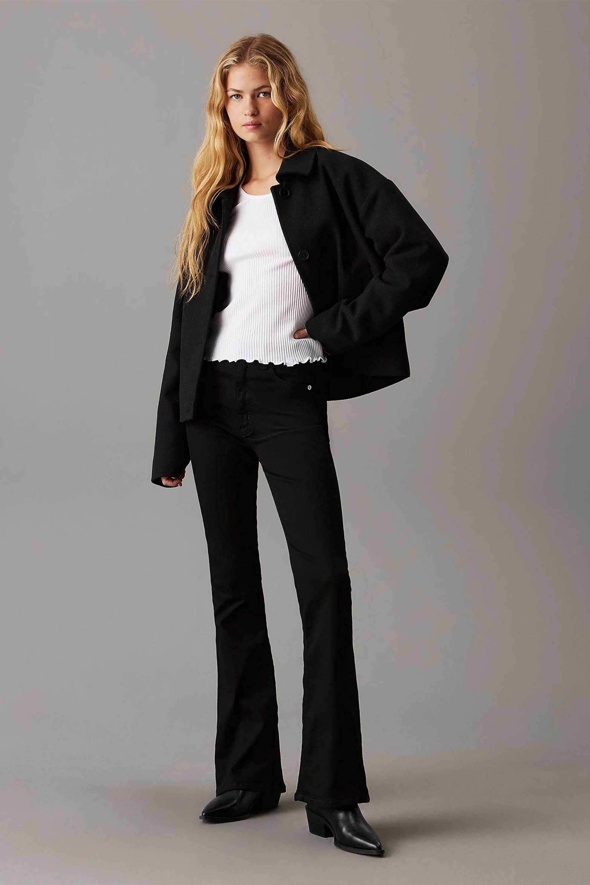 Γυναικείο τζiν παντελόνι. Ψηλόμεσο. Κλείσιμο με φερμουάρ και κουμπί. Πεντάτσεπο. Θηλιές για ζώνη. Logo patch στο πίσω μέρος. Bootcut fit. 78% βαμβάκι, 18% polyester, 4% elastane Το μοντέλο έχει ύψος 176 και φοράει νούμερο 28.