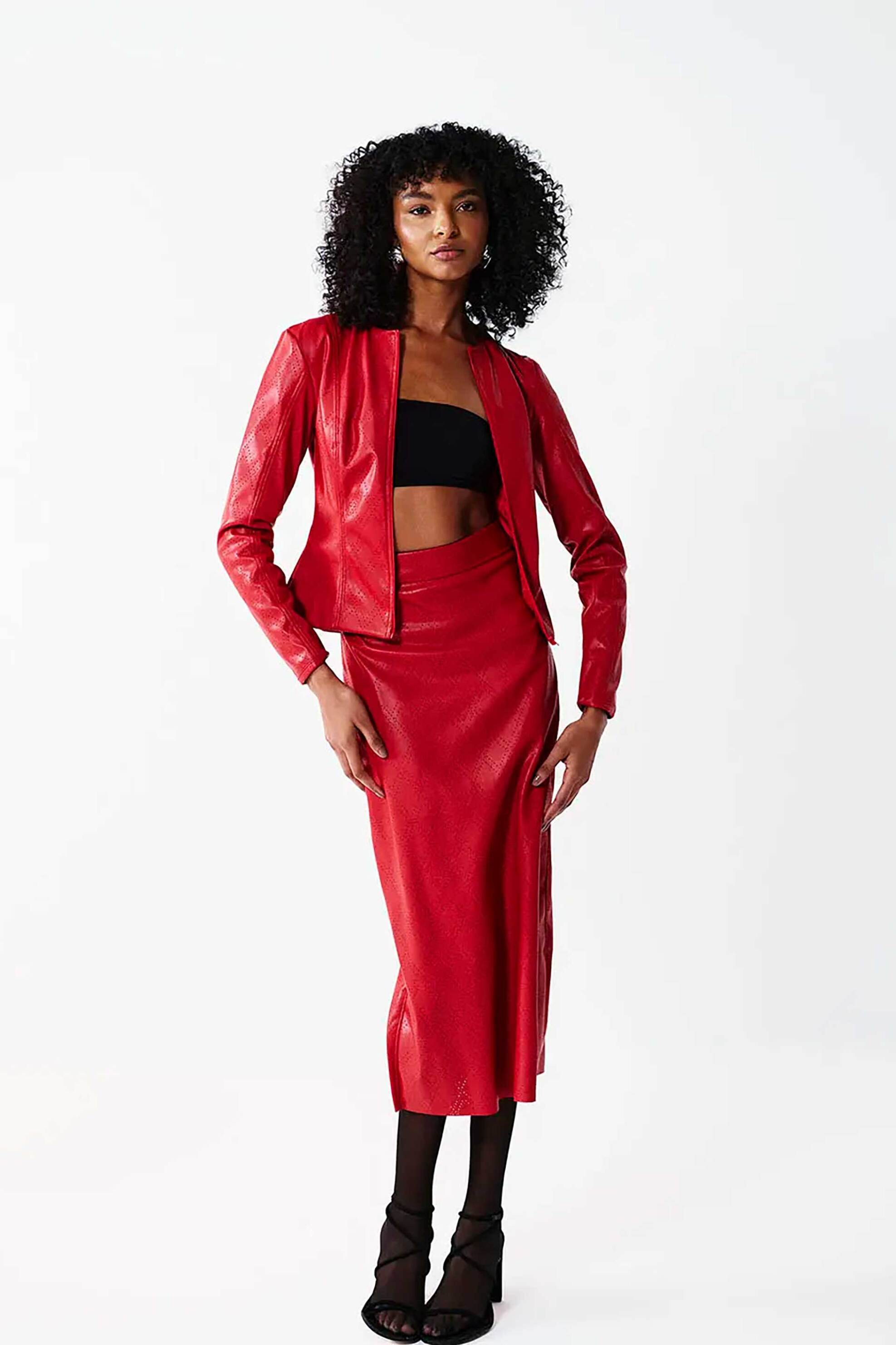 Γυναικεία midi φούστα. Ψηλόμεση. Κλείσιμο με φερμουάρ. Άνοιγμα στο πίσω μέρος. Προέλευση: Βραζιλία. 100% polyester POINT F. GROUP Α.Ε.