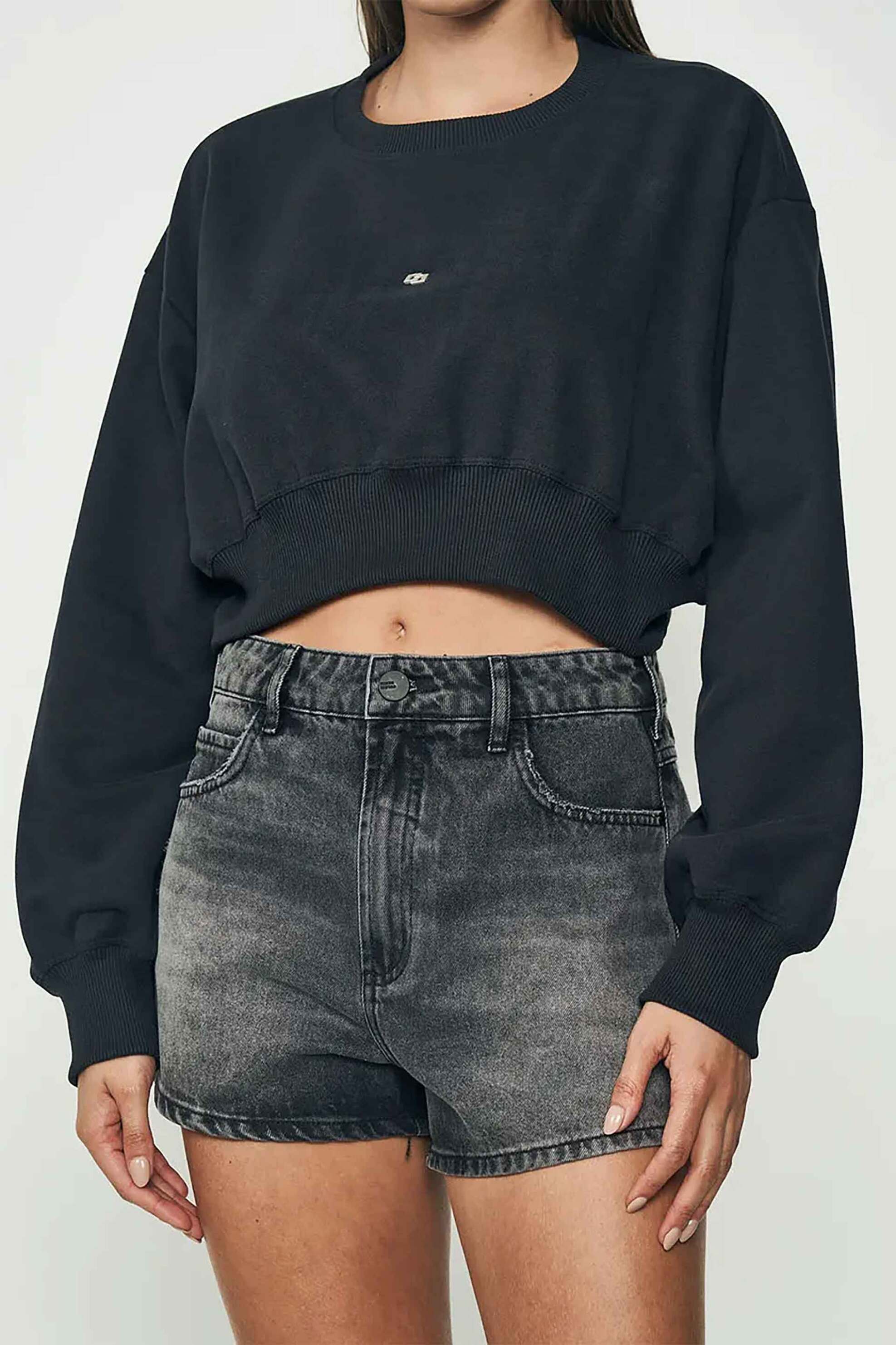 Γυναικεία μπλούζα φούτερ. Kεντημένo λογότυπο. Μακρύ μανίκι. Cropped. Ribbed τελειώματα. Στρογγυλή λαιμόκοψη. Προέλευση: Βραζιλία. 86% βαμβάκι, 14% polyester POINT F. GROUP Α.Ε.