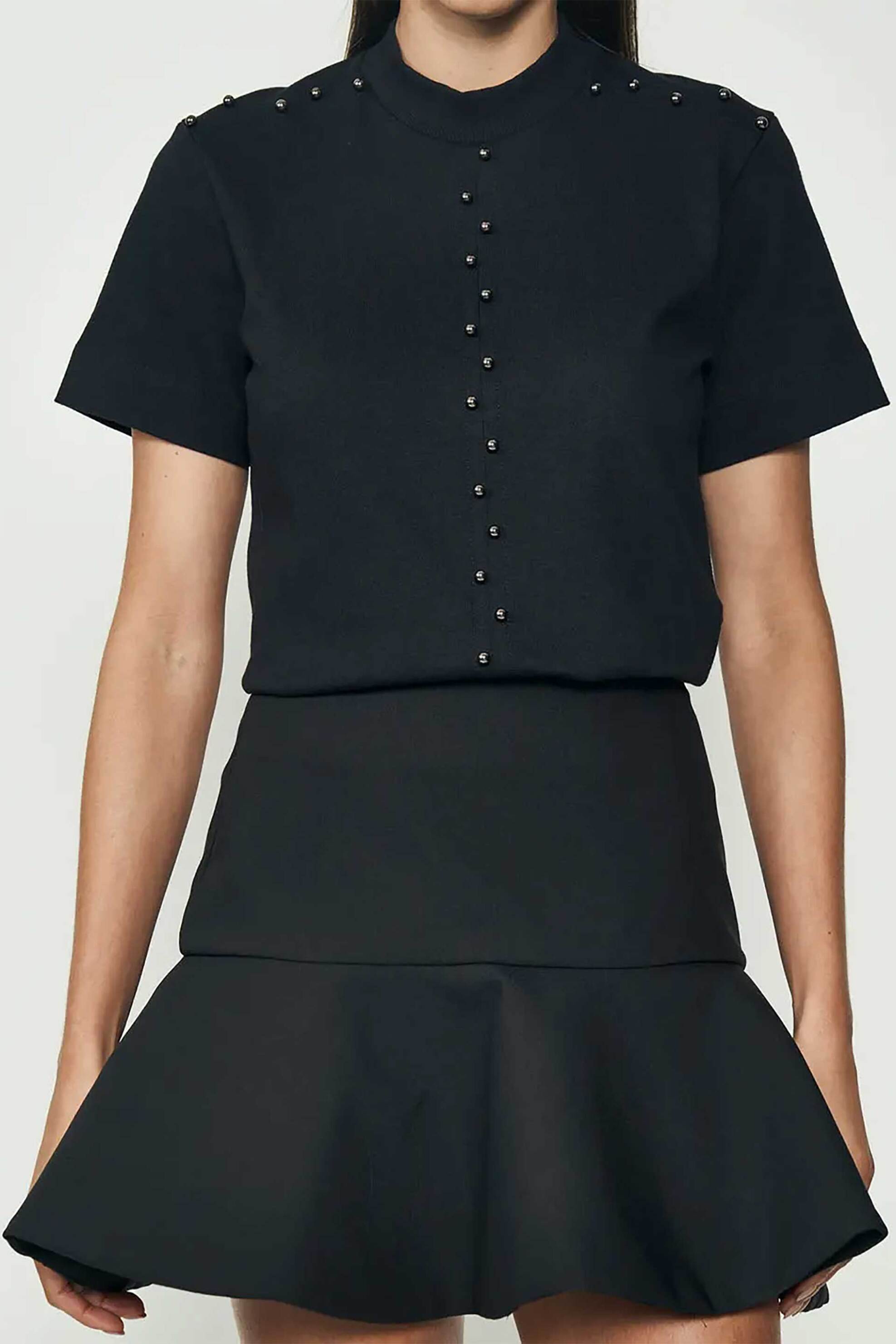 Γυναικεία μπλούζα. Μονόχρωμη. Διακοσμητικές πέτρες. Στρογγυλή λαιμόκοψη. Κοντό μανίκι. Προέλευση: Βραζιλία. 100% βαμβάκι POINT F. GROUP Α.Ε.