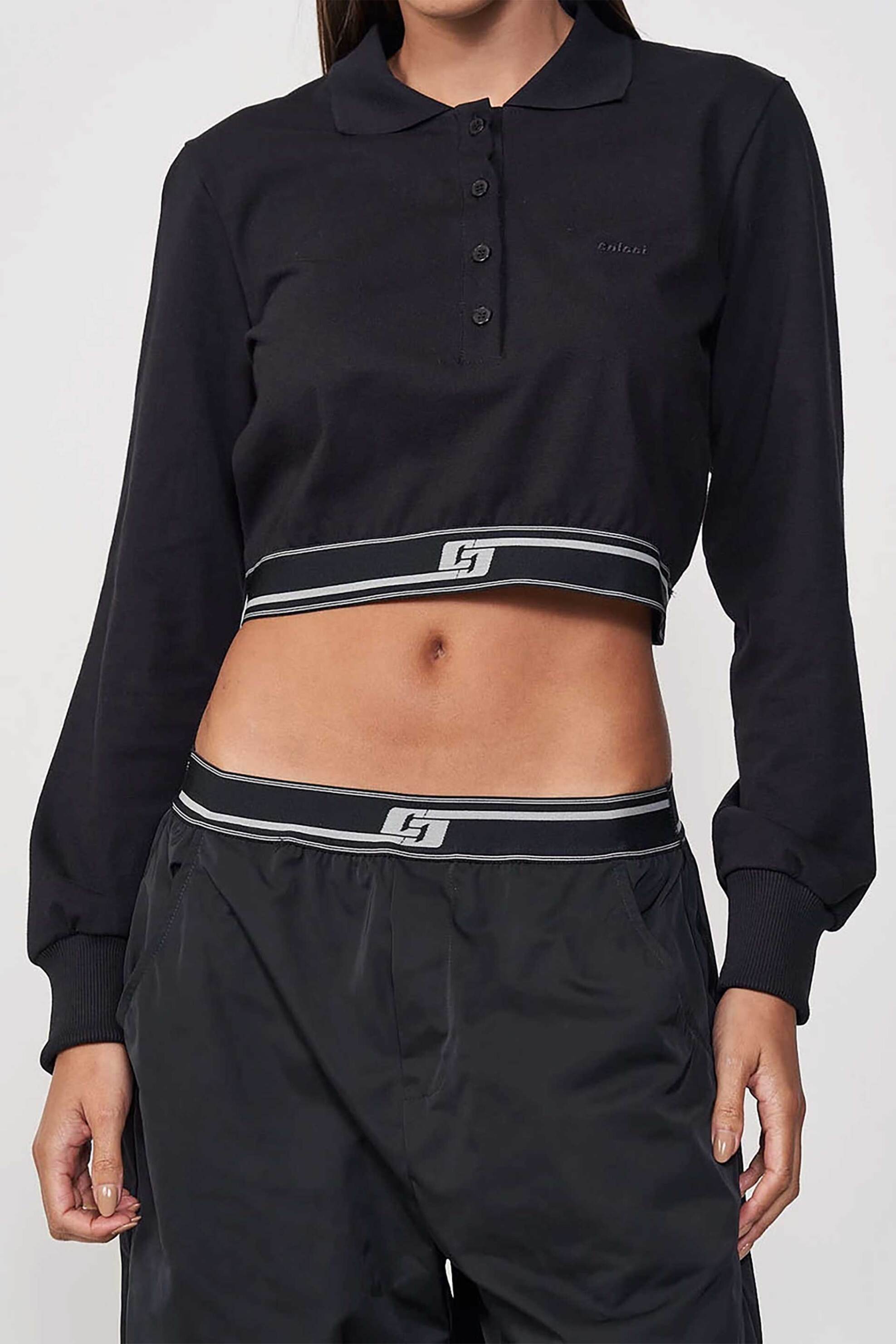 Γυναικεία μπλούζα πόλο. Μονόχρωμη. Cropped. Πατιλέτα με 4 κουμπιά. Μακρύ μανίκι. Eλαστικό τελείωμα. Προέλευση: Βραζιλία. 100% βαμβάκι POINT F. GROUP Α.Ε.