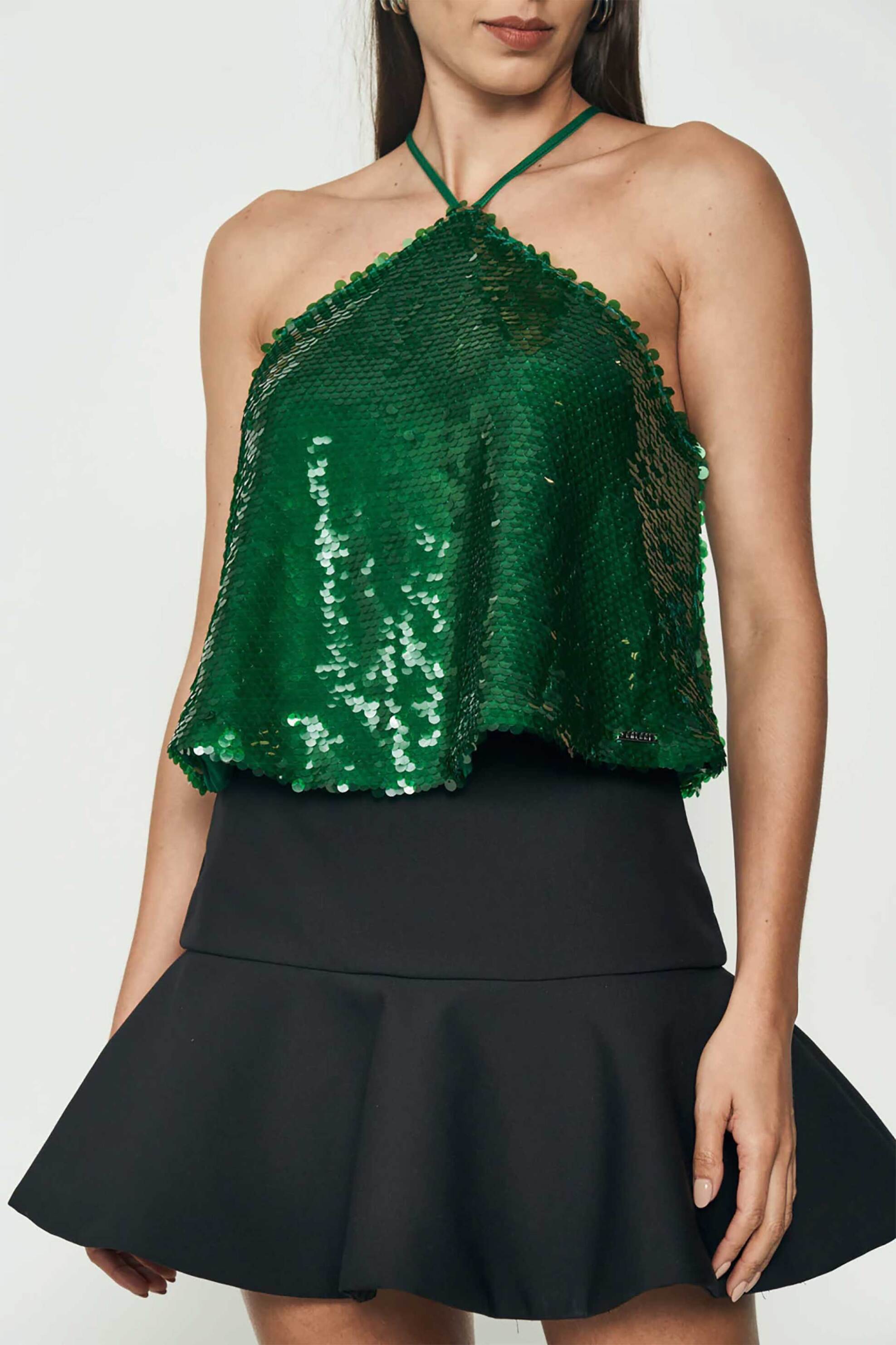 Γυναικείο τοπ. Αμάνικο. Άνοιγμα στην πλάτη. All-over σχέδιο με παγιέτα. Προέλευση: Βραζιλία. 100% polyester POINT F. GROUP Α.Ε.