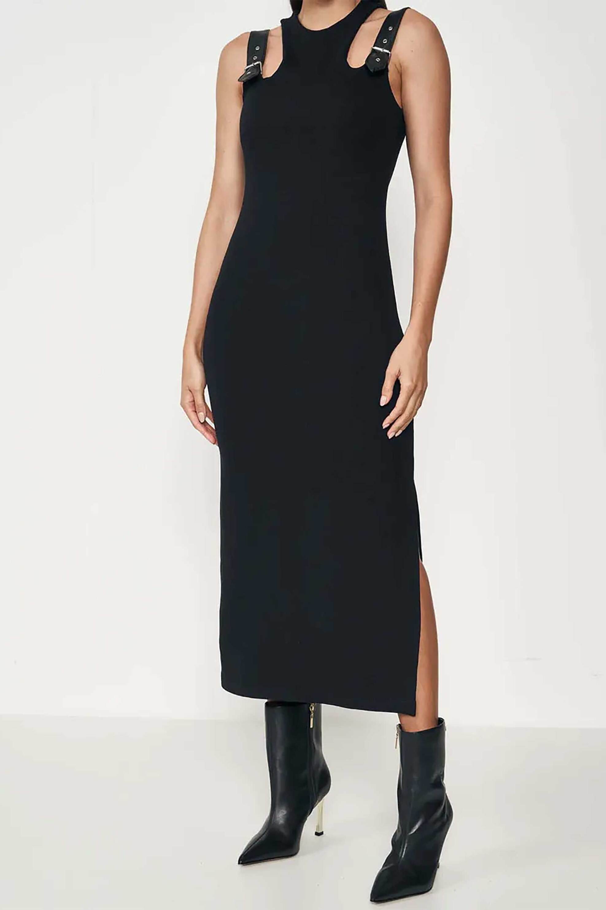 Γυναικείο midi φόρεμα. Μονόχρωμο. Αμάνικο. Ρυθμιζόμενους ώμους. Στρογγυλή λαιμόκοψη. Άνοιγμα στο πλάι. Προέλευση: Βραζιλία. 97% βαμβάκι, 3% elastane POINT F. GROUP Α.Ε.