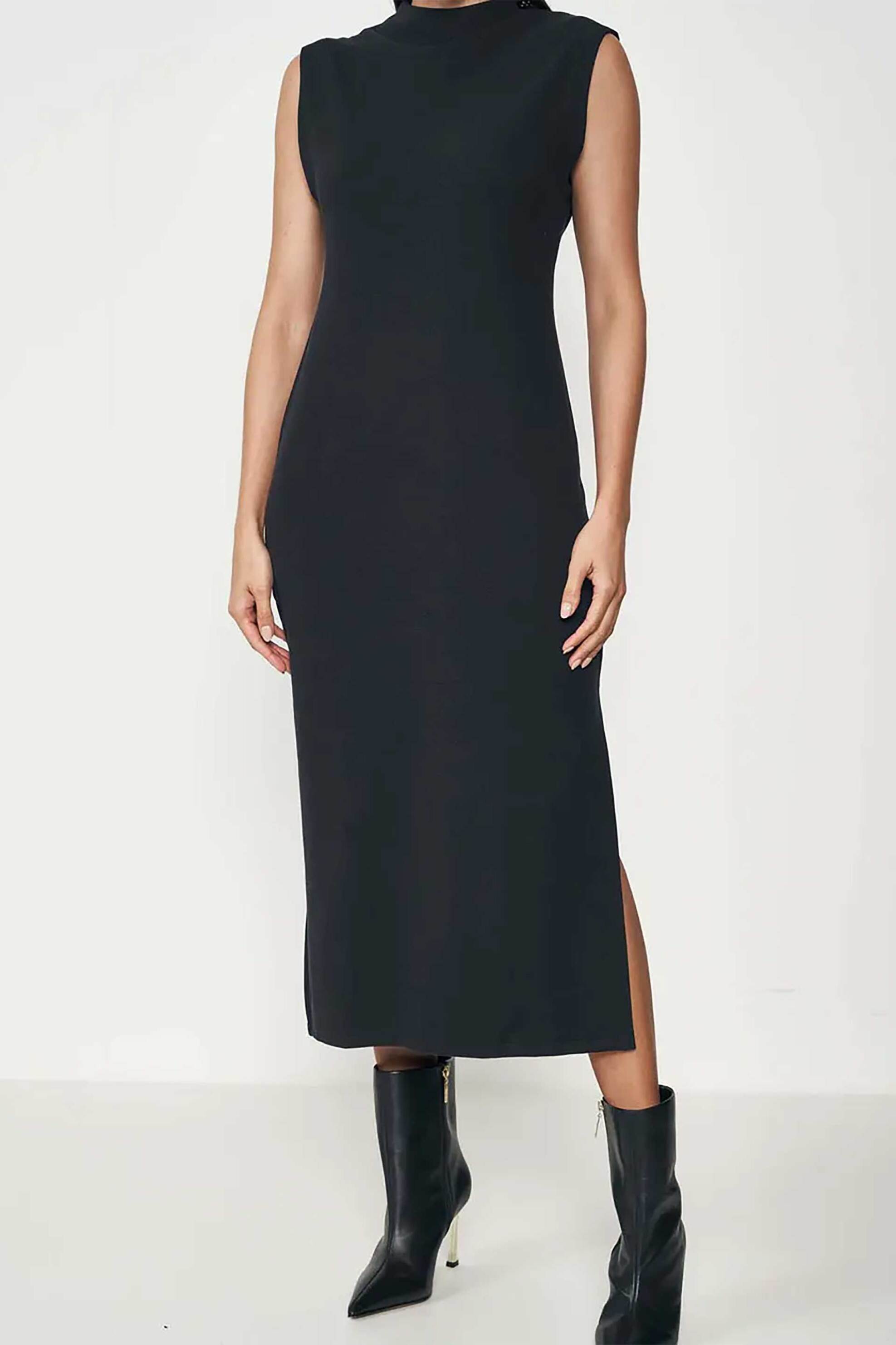 Γυναικείο midi φόρεμα. Μονόχρωμο. Αμάνικο. Ψηλός λαιμός. Άνοιγμα στο πλάι. Προέλευση: Βραζιλία. 71% βαμβάκι, 22% βισκόζη, 7% elastane POINT F. GROUP Α.Ε.