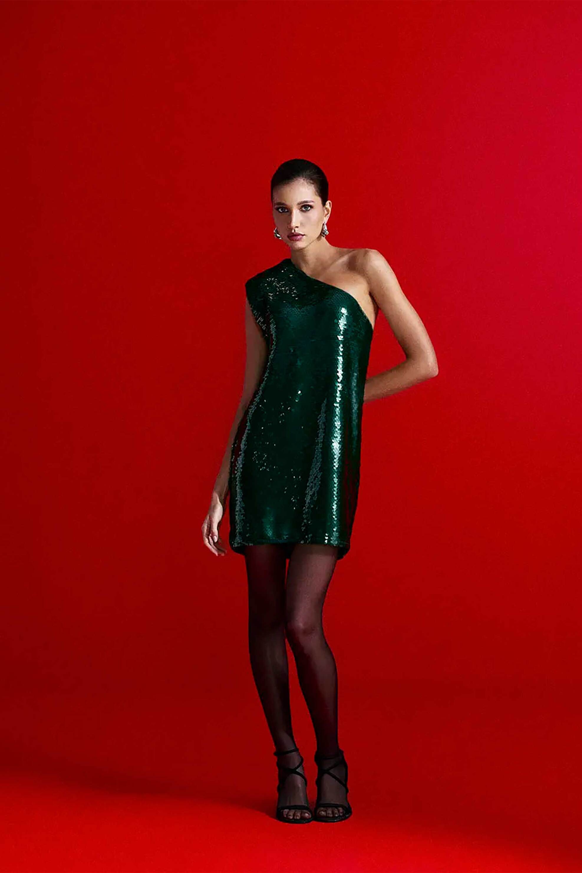 Γυναικείο mini φόρεμα. Σχέδιο με στρας. Mε έναν ώμο. Slim fit. Προέλευση: Βραζιλία. 100% polyester POINT F. GROUP Α.Ε.