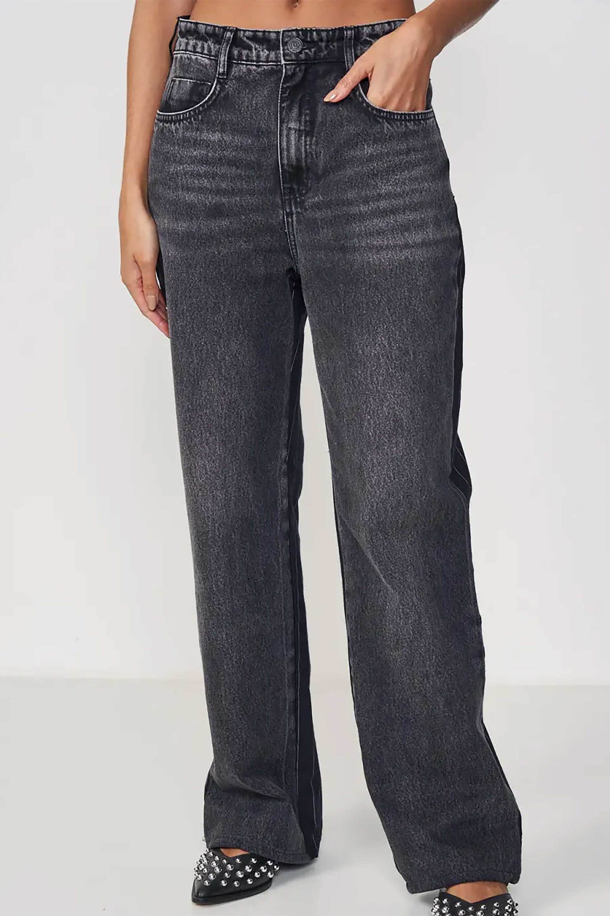 Γυναικείο παντελόνι. Διπλής όψης. Κλασικό τζιν παντελόνι στο μπροστινό μέρος. Ριγέ σχέδιο στο πίσω μέρος. Κλείσιμο με κουμπί και φερμουάρ. Προέλευση: Βραζιλία. 100% βαμβάκι POINT F. GROUP Α.Ε.