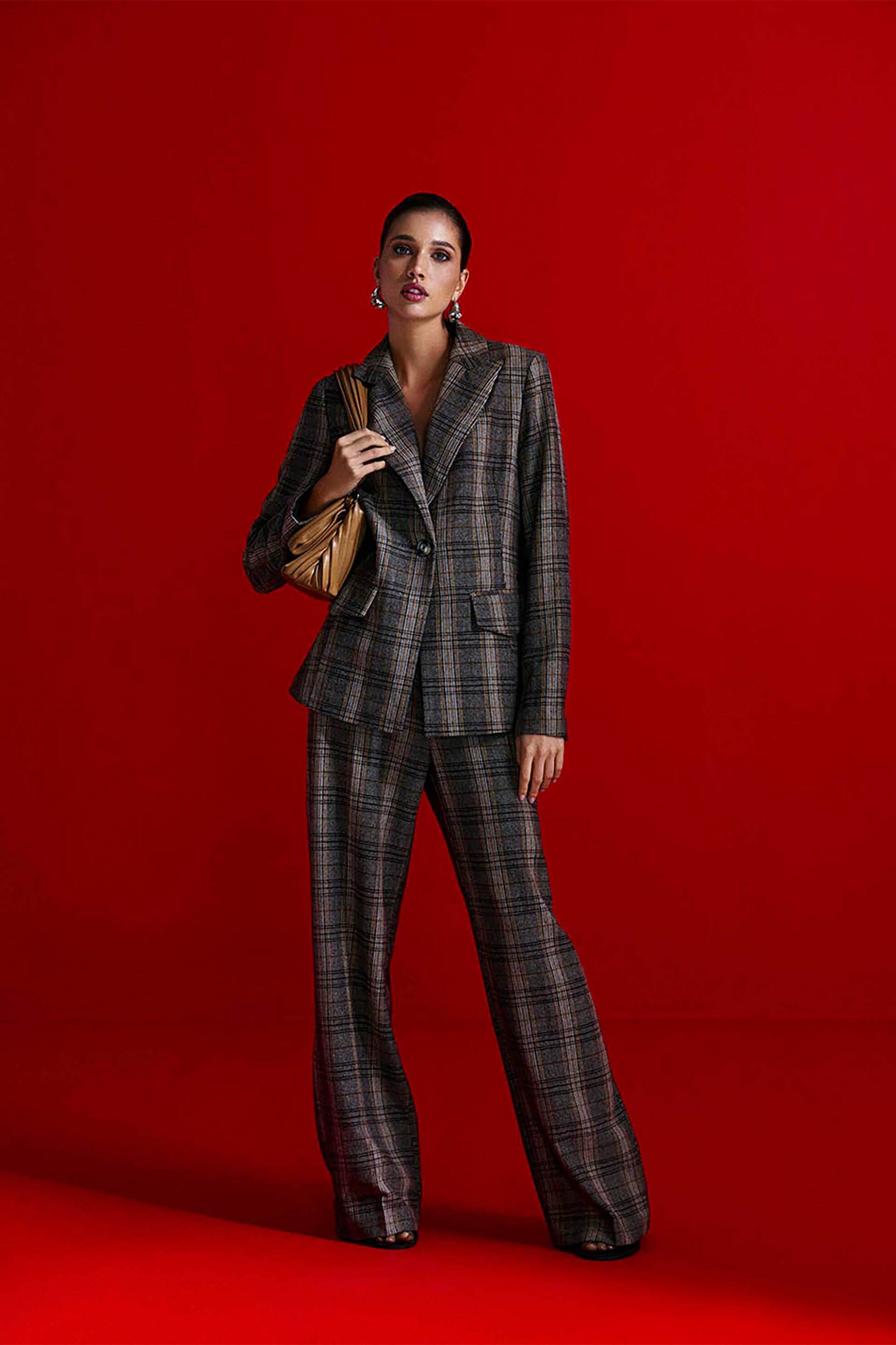 Γυναικείο παντελόνι. Καρό σχέδιο. Κλείσιμο με φερμουάρ και κόπιτσα. Τσέπες στο πλάι και στο πίσω μέρος. Προέλευση: Βραζιλία. 100% polyester POINT F. GROUP Α.Ε.