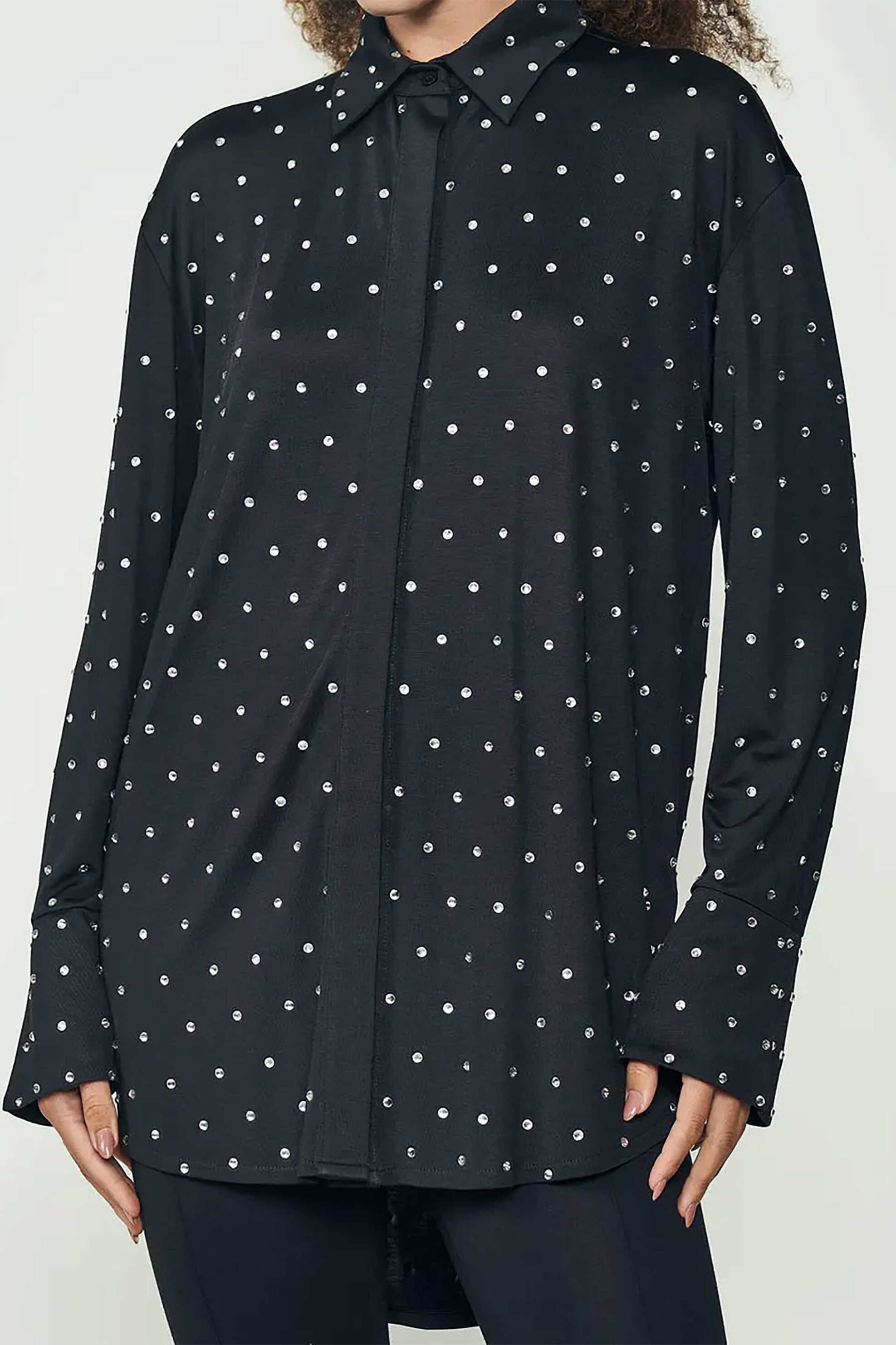 Γυναικείο πουκάμισο. Μονόχρωμο. Στρας. Κλασικός γιακάς. Κλείσιμο με κουμπιά. Μακρύ μανίκι. Προέλευση: Βραζιλία. 94% βισκόζη, 6% elastane POINT F. GROUP Α.Ε.