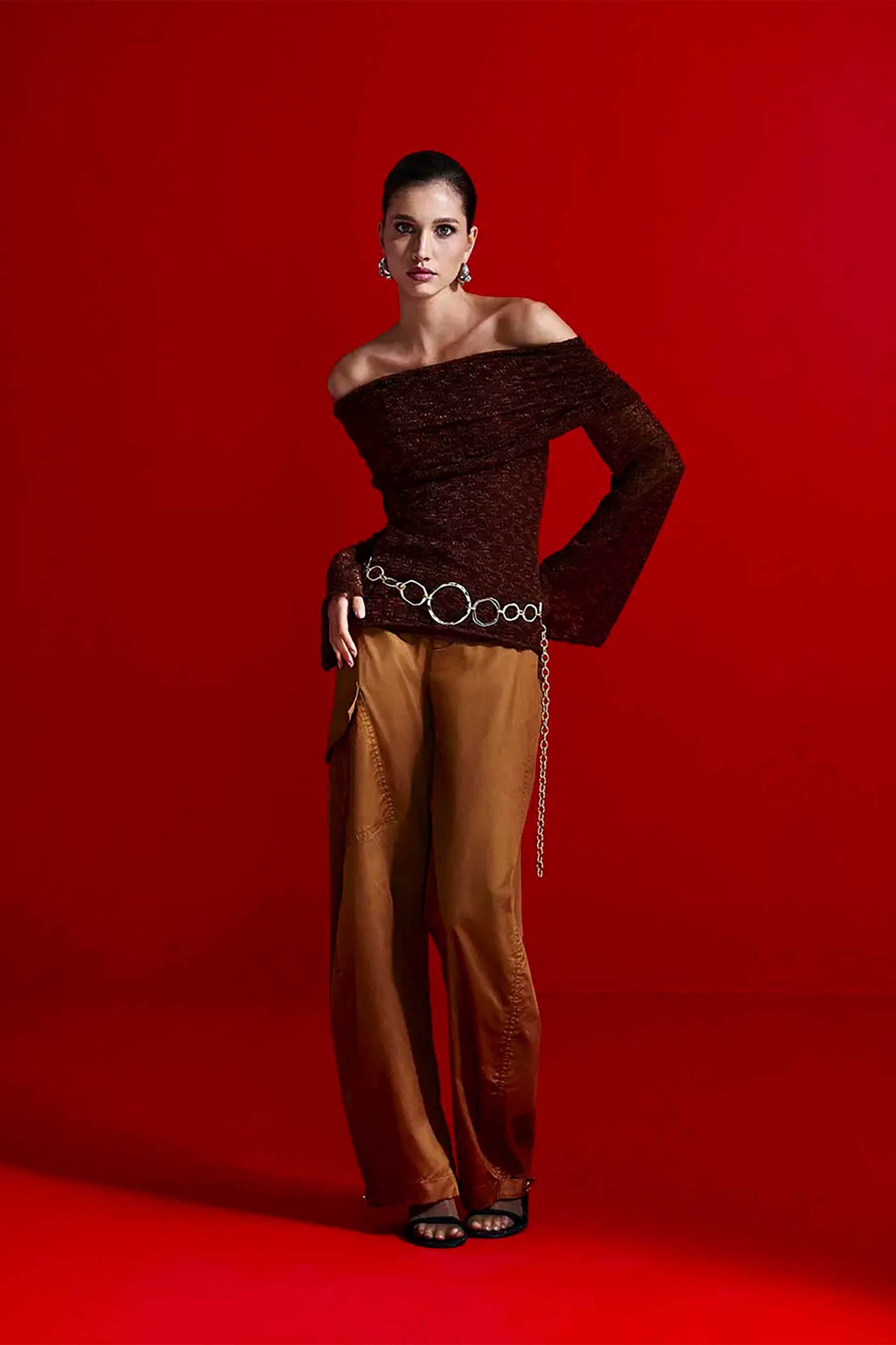 Γυναικείο τοπ. Μονόχρωμο. Carmen λαιμόκοψη. Μακρύ μανίκι. Προέλευση: Βραζιλία. 100% polyester POINT F. GROUP Α.Ε.