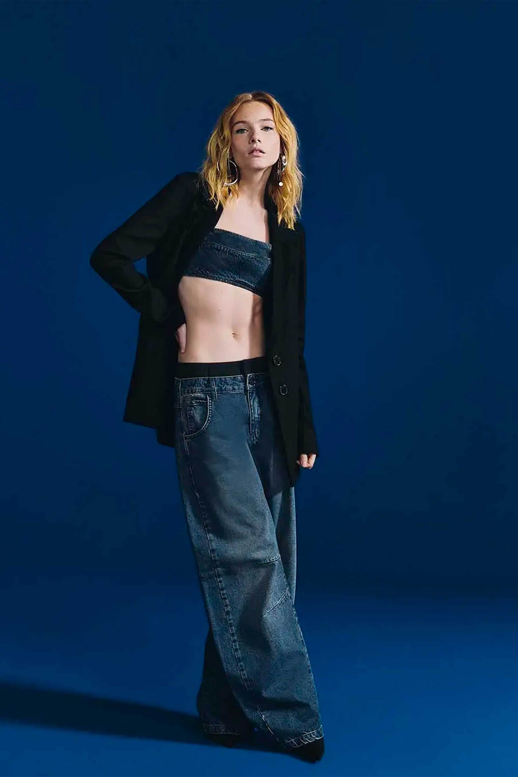 Γυναικείο τζιν παντελόνι. Πεντάτσεπο. Κλείσιμο με κουμπί και φερμουάρ. Logo patch στο πίσω μέρος. Barrel fit. Προέλευση: Βραζιλία. 100% βαμβάκι POINT F. GROUP Α.Ε.