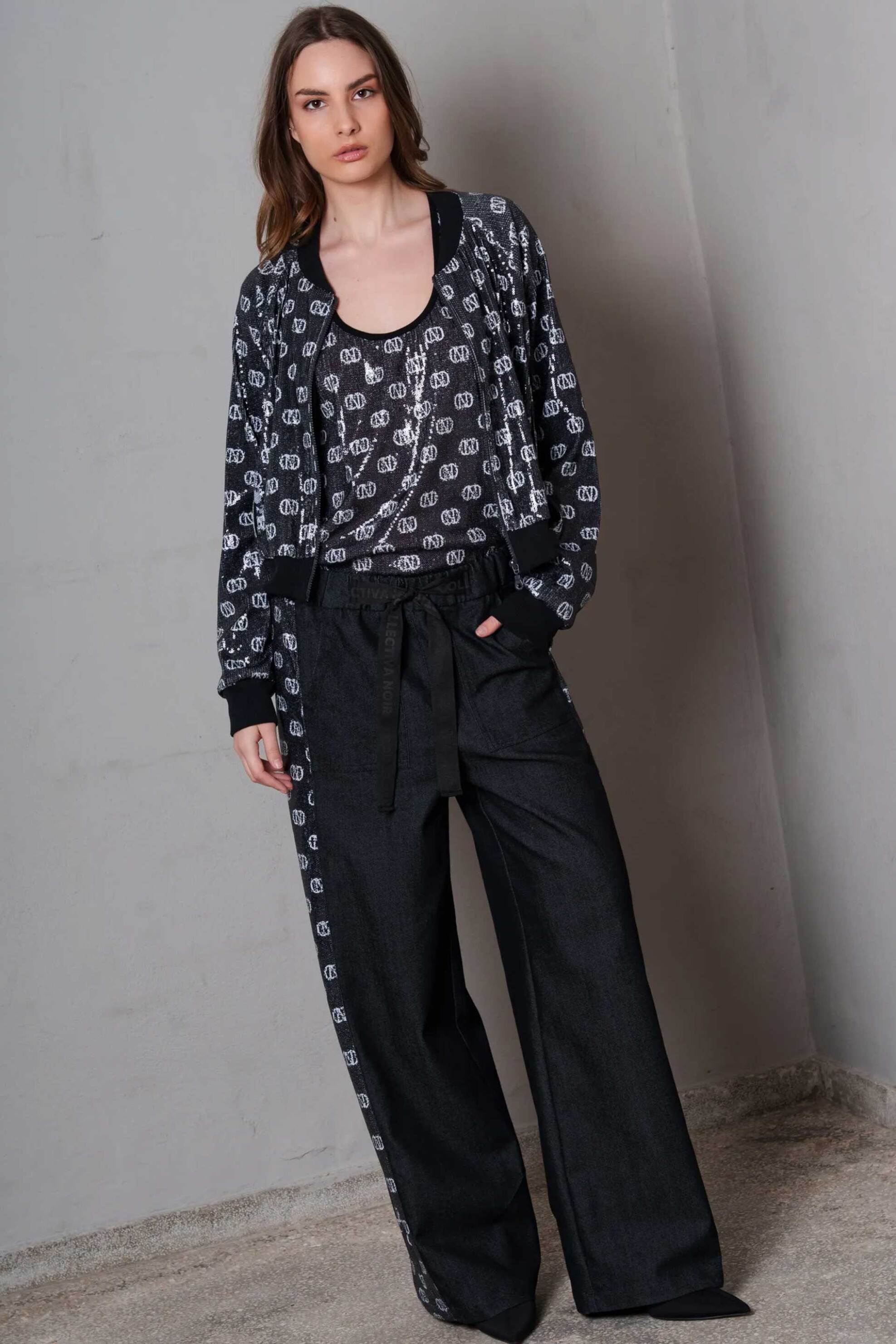 Γυναικείο παντελόνι. Ελαστική μέση. Τσέπες στο πλάι. Δέσιμο με κορδέλα με λογότυπο CN. Πλαϊνές τσέπες. Χαμηλός καβάλος. Φάσα από παγιέτα CN στο πλάι. Προέλευση: GR. 73% βαμβάκι, 24% polyester, 3% spandex Το μοντέλο φοράει νούμερο S. ΠΑΝΤΑΖΟΠΟΥΛΟ...