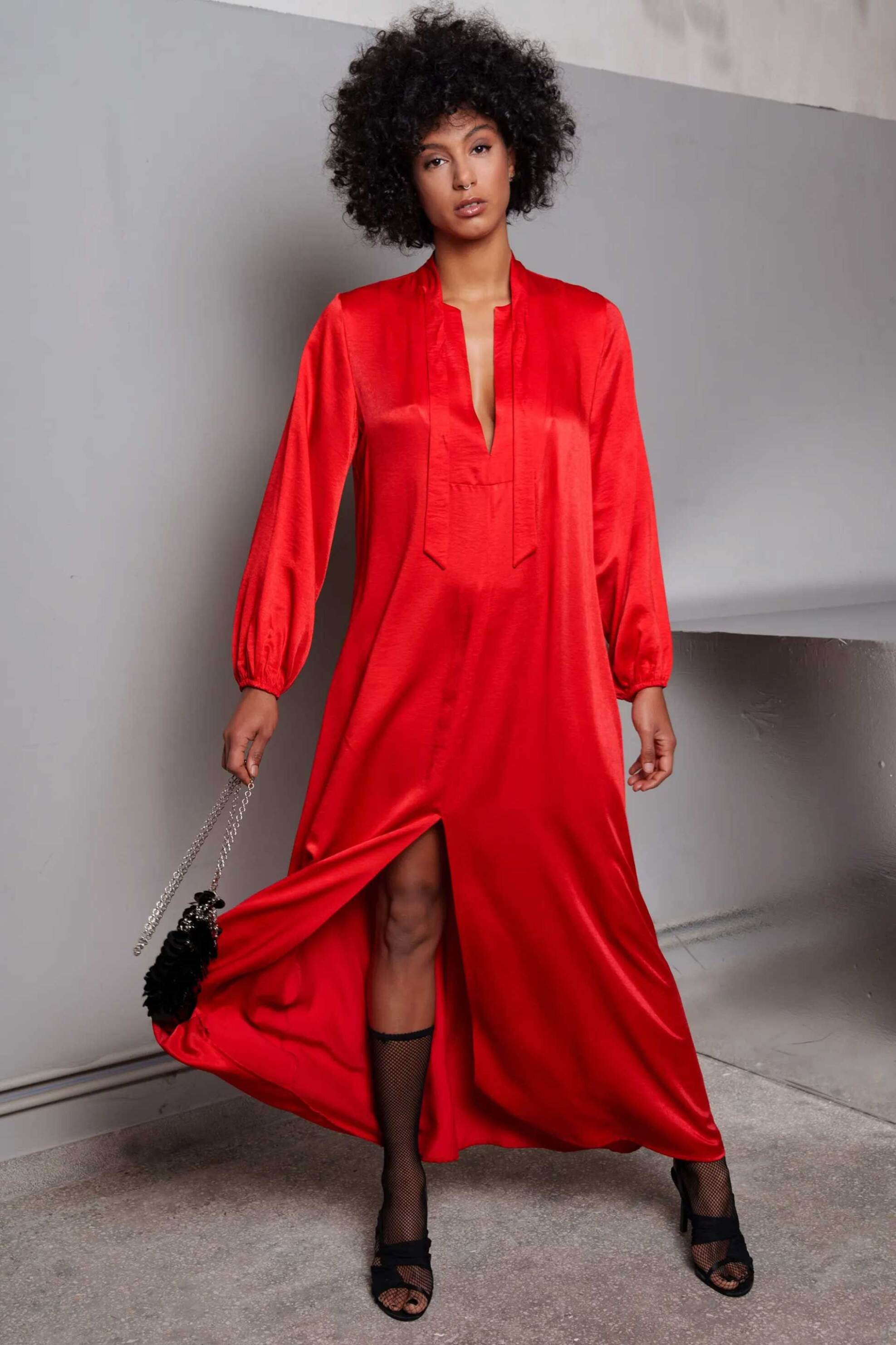 Γυναικείο maxi φόρεμα. V λαιμόκοψη. Μακρύ μανίκι με balloon τελείωμα. Χαλαρή γραμμή. Προέλευση: GR. 55% rayon, 44% polyester Το μοντέλο φοράει νούμερο S/Μ. ΠΑΝΤΑΖΟΠΟΥΛΟΣ Μ.& ΣΙΑ Ε.Ε.