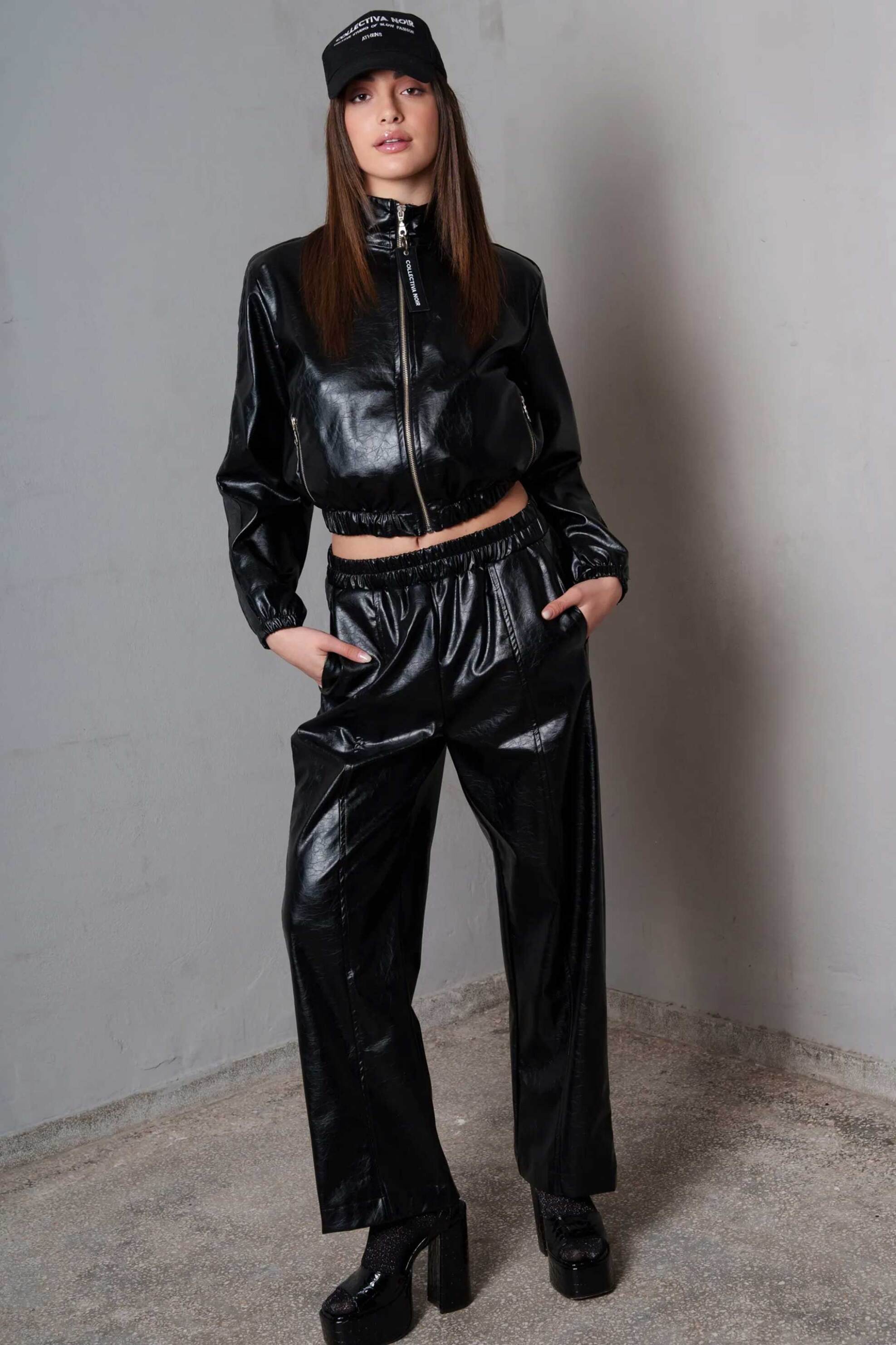 Γυναικείο παντελόνι. Ελαστική μέση με λάστιχο. Δύο πλαϊνές τσέπες. Κανονική γραμμή. Προέλευση: GR. 100% τεχνόδερμα-100% βισκόζη Το μοντέλο φοράει νούμερο S. ΠΑΝΤΑΖΟΠΟΥΛΟΣ Μ.& ΣΙΑ Ε.Ε.