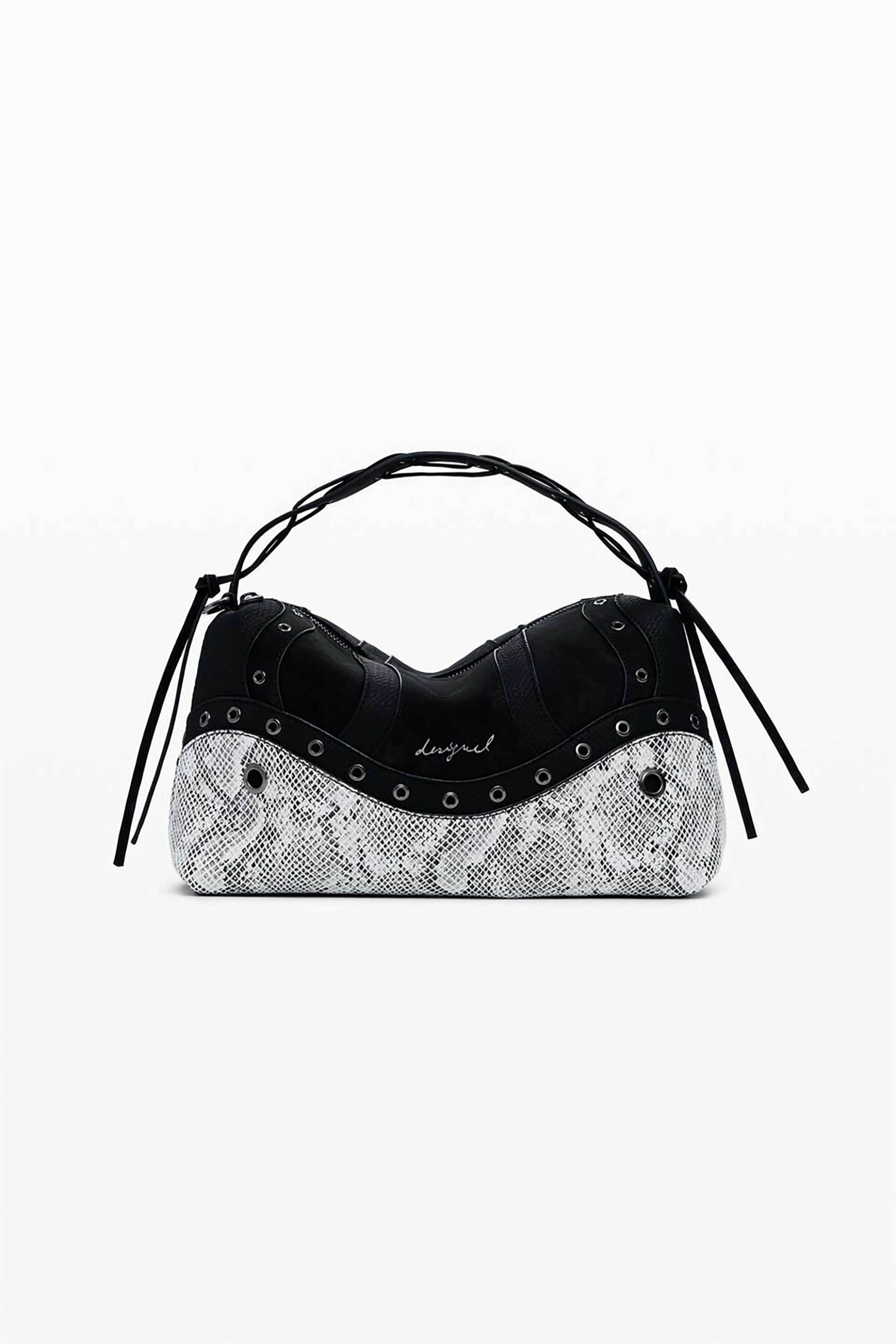 Γυναικεία τσάντα χειρός. Snake effect. Κλείσιμο με φερμουάρ. Εναλλάξιμες λαβές. Εσωτερική τσέπη. Διαστάσεις: 17 x 11 x 30 cm. Προέλευση: Κίνα. 100% polyurethane Sustainable: προϊόν που έχει κατασκευαστεί με ίνες ανακυκλωμένου πλαστικού, μειώνοντας το περιβαλλοντικό αποτύπωμα. SHOP & TRADE AEBE