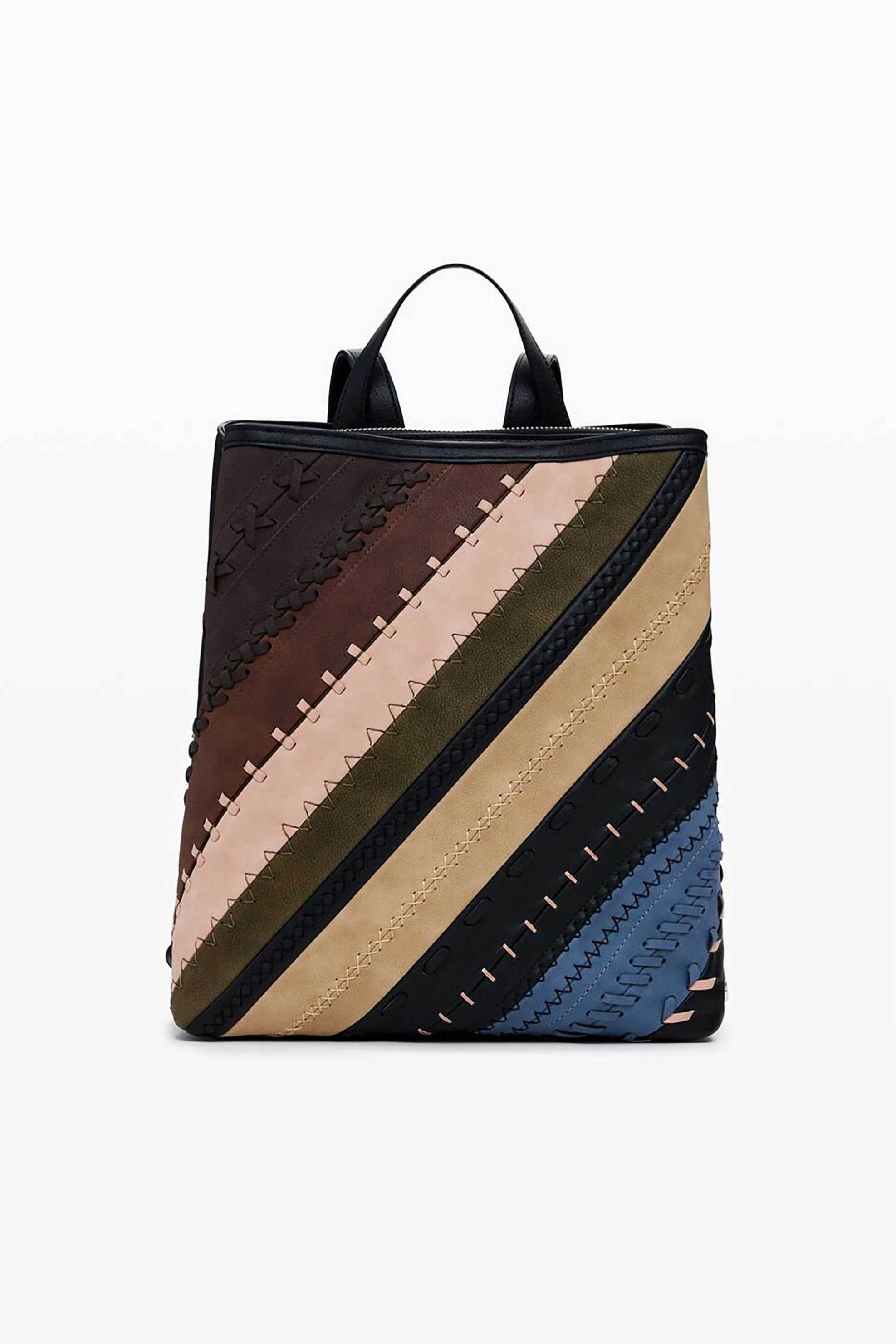 Γυναικεία τσάντα χειρός/backpack. Συνδυασμό διαφορετικών υφασμάτων. Eφέ δέρματος. Kλείσιμο με φερμουάρ. Πολλαπλά εσωτερικά διαμερίσματα. Εσωτερική τσέπη. Χωρητικότητα: 11,22 lt. Διαστάσεις: 27,50 x 12 x 34 cm. Προέλευση: Κίνα. 100% polyurethane Sustainable: προϊόν που έχει κατασκευαστεί με ίνες ανα...