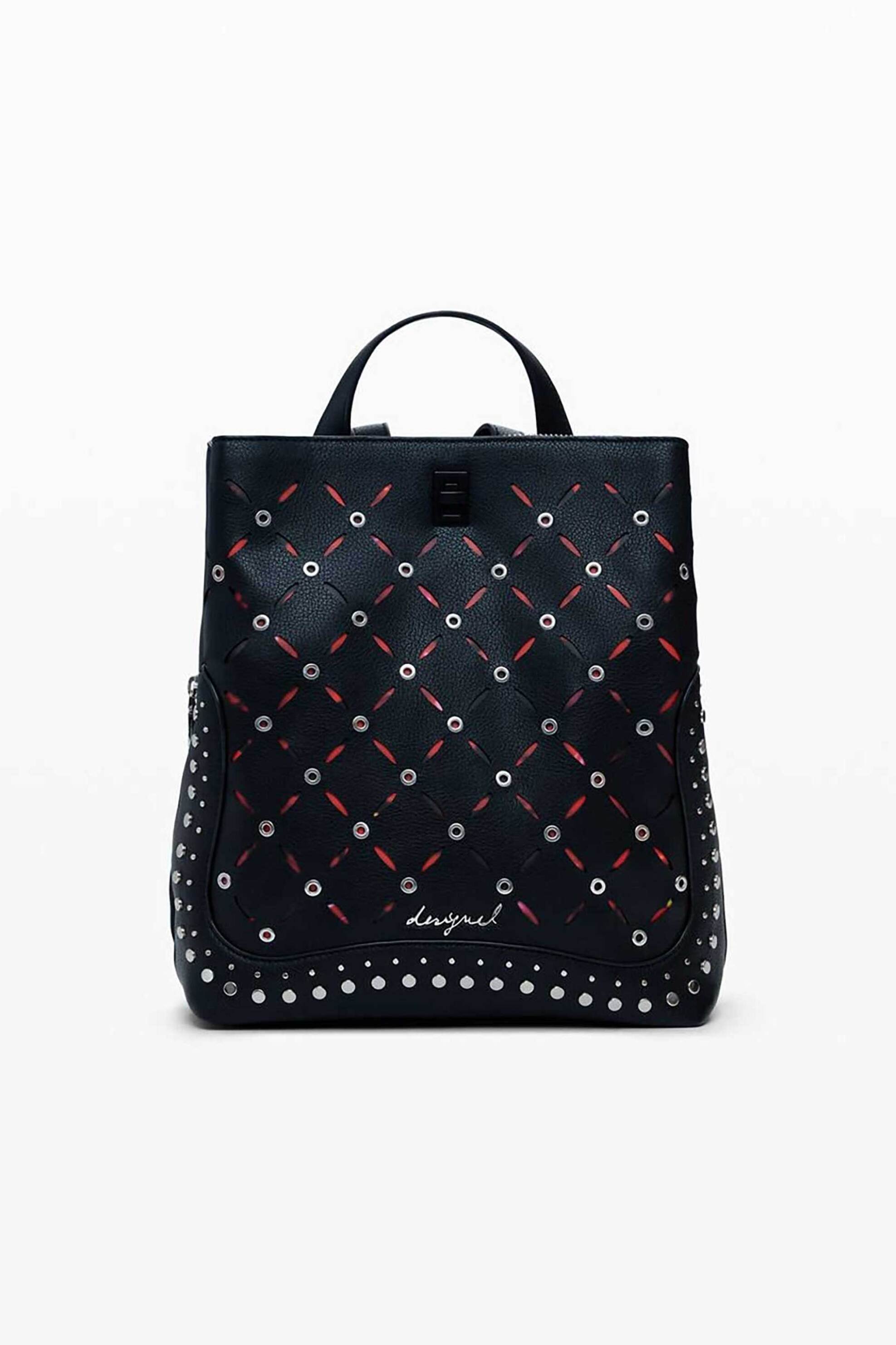 Γυναικεία τσάντα χειρός/backpack. Διάτρητο σχέδιο και τρουκς. Kλείσιμο με φερμουάρ. Πολλαπλά εσωτερικά διαμερίσματα. Αφαιρούμενη λαβή χειρός. Χωρητικότητα: 6,15 lt. Διαστάσεις: 24 x 9 x 30,60 cm. Προέλευση: Κίνα. 100% polyurethane Sustainable: προϊόν που έχει κατασκευαστεί με ίνες ανακυκλωμένου πλα...