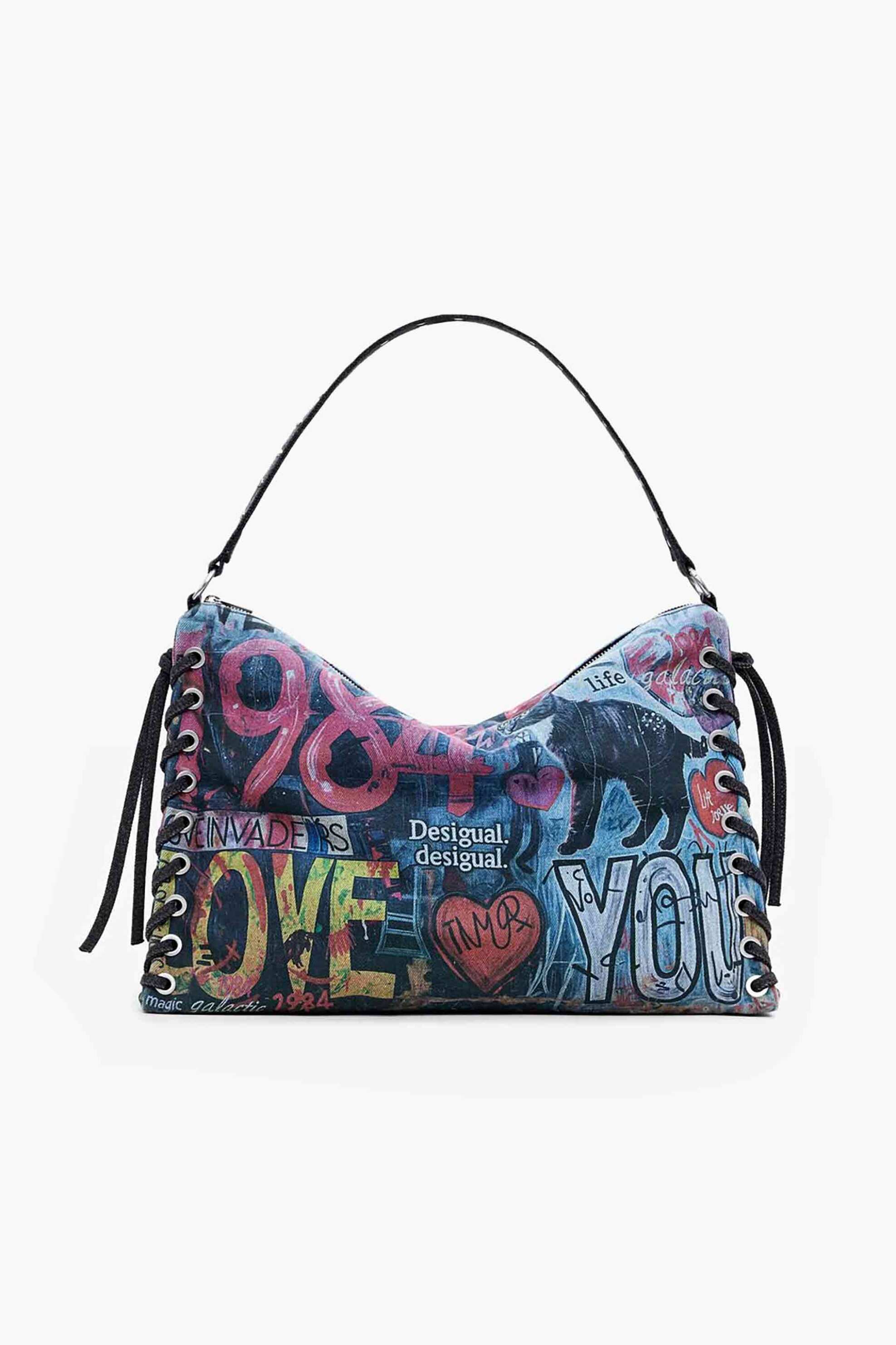 Γυναικεία τσάντα ώμου. Denim. Λογότυπο. Kλείσιμο με φερμουάρ. Εσωτερική τσέπη. Λαβή χειρός και ώμου. Διαστάσεις: 44 x 14 x 30 cm. Προέλευση: Κίνα. 96% βαμβάκι, 2% polyester, 1% lyocell, 1% βισκόζη Better Cotton Initiative: προϊόν που έχει κατασκευαστεί με ίνες ή/και διαδικασίες βιώσιμης παραγωγής, ...
