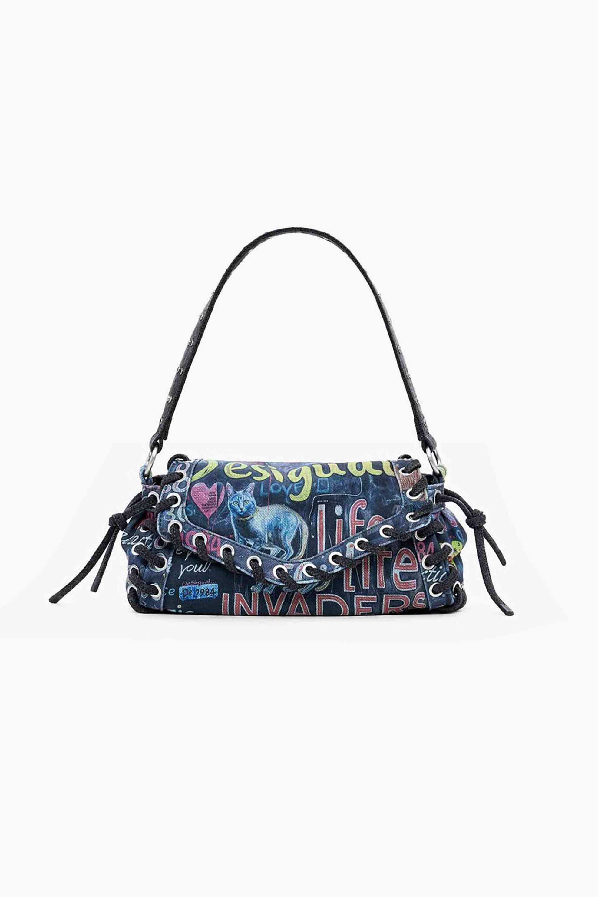 Γυναικεία τσάντα ώμου/crossbody. Lettering. Ανάγλυφο λογότυπο. Flap κλείσιμο. Εσωτερική τσέπη με φερμουάρ. Λαβή χειρός και ώμου. Διαστάσεις: 28,70 x 10 x 11,50 cm. Προέλευση: Κίνα. 96% βαμβάκι, 2% polyester, 1% lyocell, 1% βισκόζη SHOP & TRADE AEBE