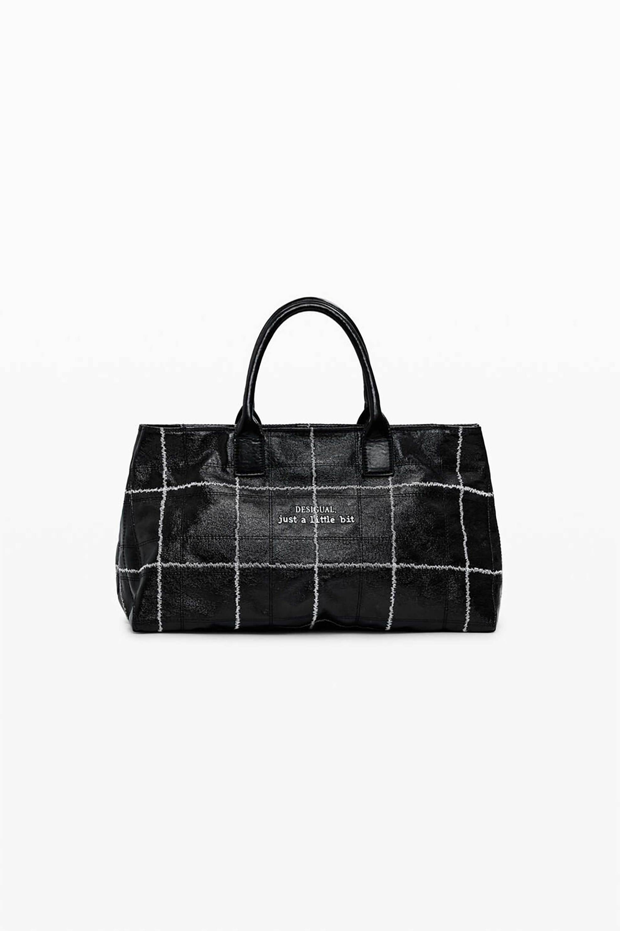 Γυναικεία τσάντα shopper. Contrast ραφές. Ανάγλυφο λογότυπο. Kλείσιμο με φερμουάρ. Εσωτερική τσέπη. Σταθερή λαβή. Αφαιρούμενο μακρύ λουράκι. Διαστάσεις: 40 x 17 x 19 cm. Προέλευση: Κίνα. 80% βαμβάκι, 20% polyurethane SHOP & TRADE AEBE