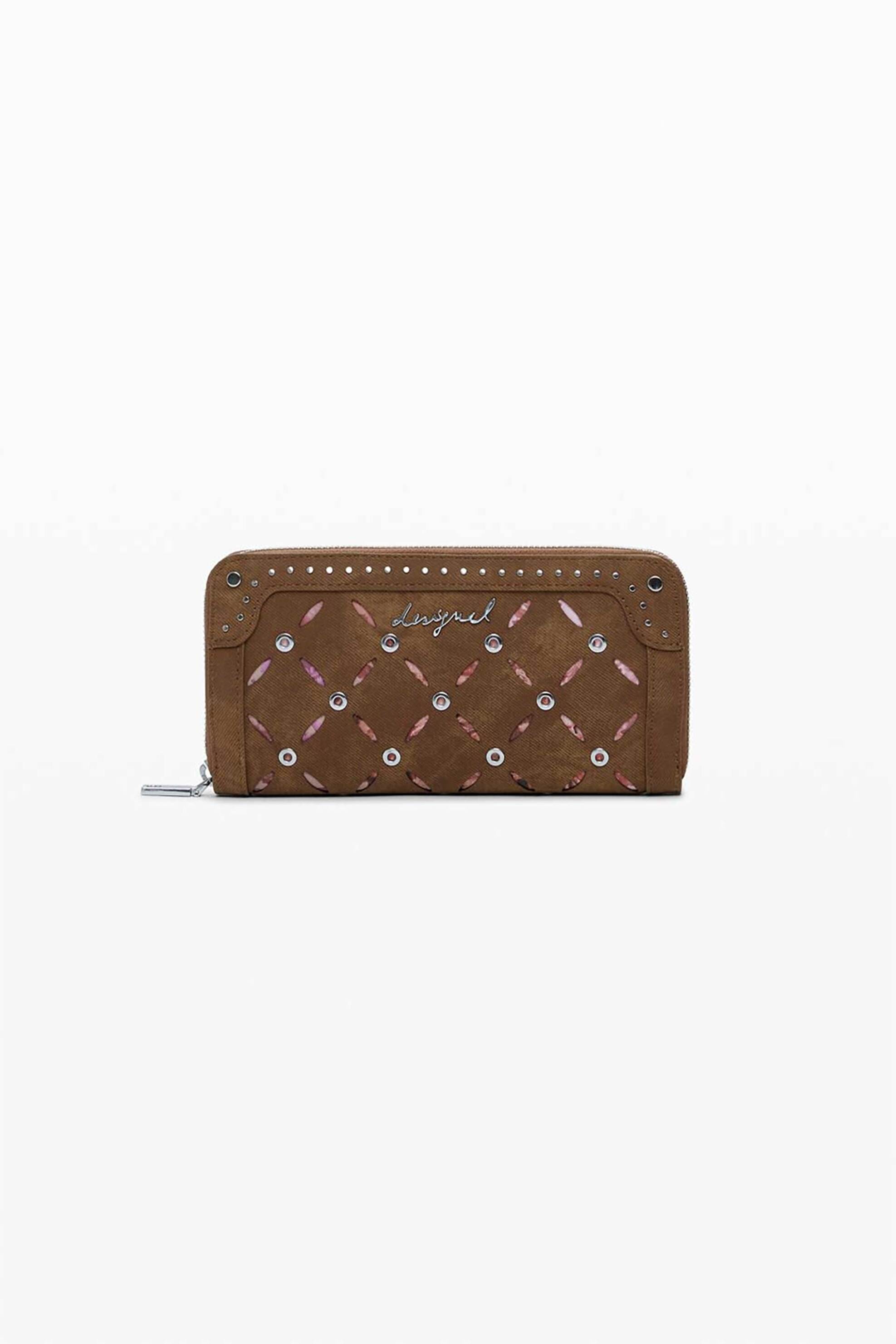 Γυναικείο πορτοφόλι. Τρουκς και διάτρητο σχέδιο. Λογότυπο. Κλείσιμο με φερμουάρ. Πολλαπλά εσωτερικά διαμερίσματα. Διαστάσεις: 20,5 x 2 x 10 cm. Προέλευση: Κίνα. 100% polyurethane SHOP & TRADE AEBE